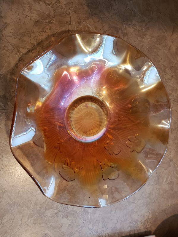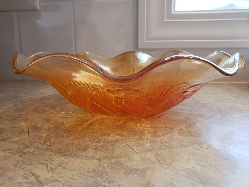 Carnival Glass Dish measuring 11.5" × 3.25". *** Most Importantly, have you read the terms and conditions section of this auction? Please do so BEFORE bidding because failure to review the contract does not grant you immunity from them. Please do not be upset with our company if your fail to understand the terms/conditions that you agree to by placing a bid as we are unable to offer exceptions regardless of the situation. If you bid, you agree to the terms and conditions (including most importantly the pickup dates/times). Any buyer inquiries attempting to collect their items either earlier or later than the specified times will be simply sent a screenshot of the publicly advertised period for collection that they agreed to by placing a bid. No exceptions will be made, for any buyer, for any reason, even family emergencies or acts of God, in regards to pickup dates/times. ALSO, if you win a single auction or multiple, please wait until the entire auction is complete (not just your item) for the invoices to be sent. We urge ALL buyers to check their EstateSales.org Message Box, not your personal email like Gmail or Yahoo, for that invoice. Failure to review your EstateSales.org inbox for the Invoice (which will contain the hidden address and confirmation of pickup dates/times) is not an excuse for missing the pickup dates and times as they are public since the start of any auction. If for some reason you are unable to access your invoice with the address, it is your responsibility to contact Ms. Museum Estate Sales PRIOR to the pickup day to confirm the location. Any buyer who fails to collect their item during the specified dates/times will NOT receive their money back, the item(s) or any other form of compensation due to the terms that you agree to when bidding. Best of Luck!