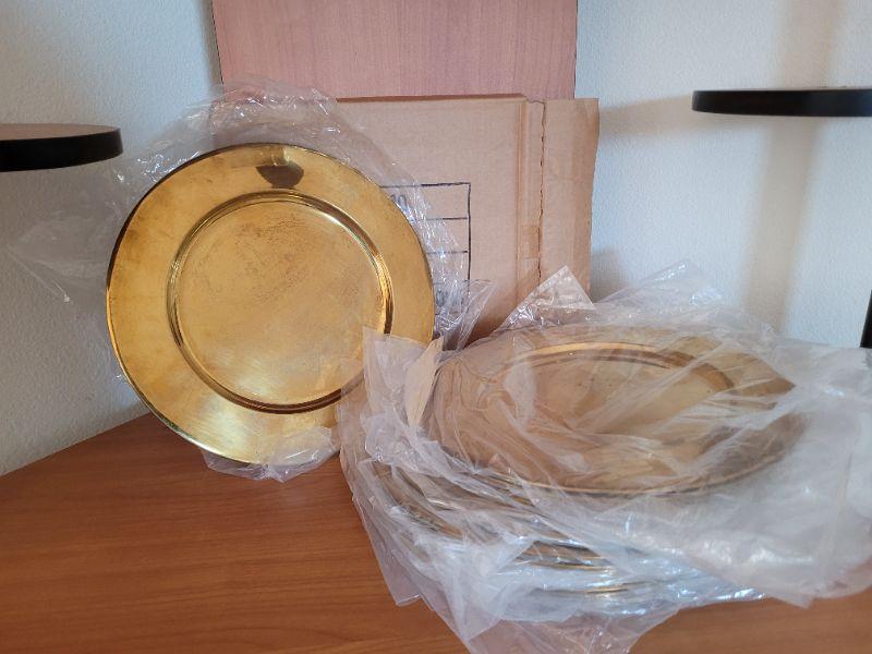 Lot #64: Vintage Group of (16) TUESDAY MORNING Brass Chargers NEVER USED