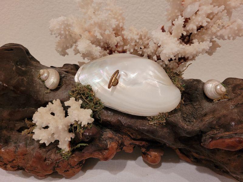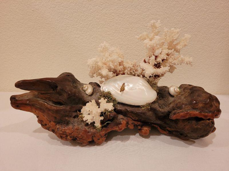 Lot 64: Vintage Burlwood, Coral and Shell Music Box (Music box doesn't work)