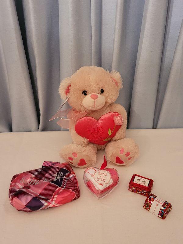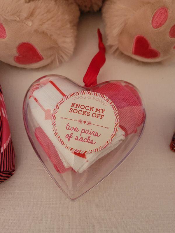 Lot 64: NEW Valentine's Day Socks, Earrings with Jewelry Box, Makeup Bag and Plushie