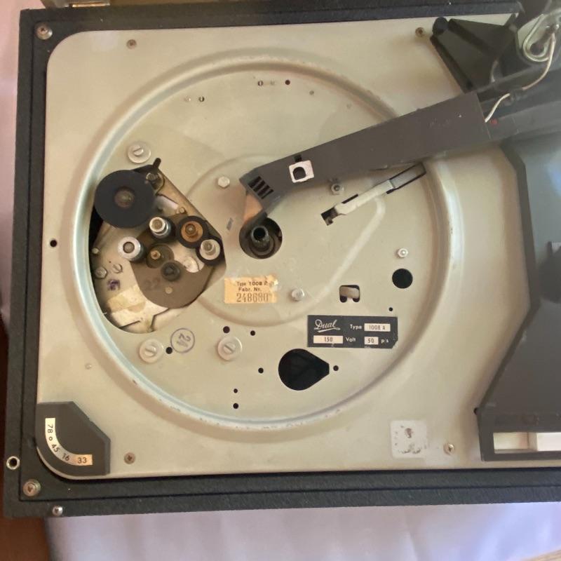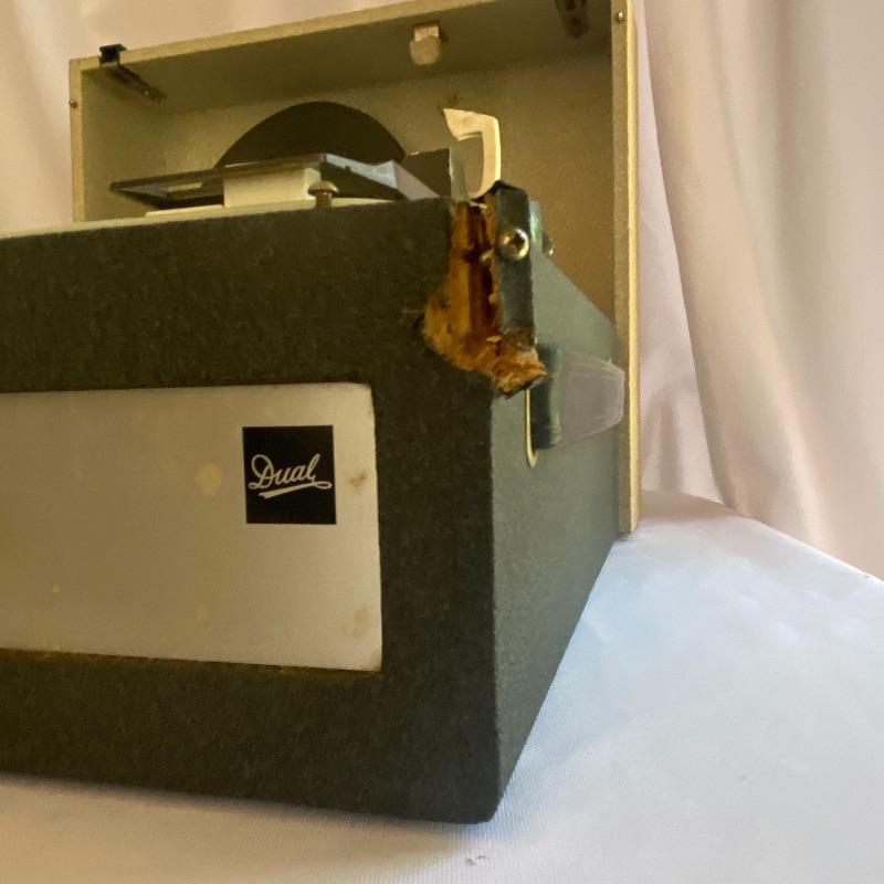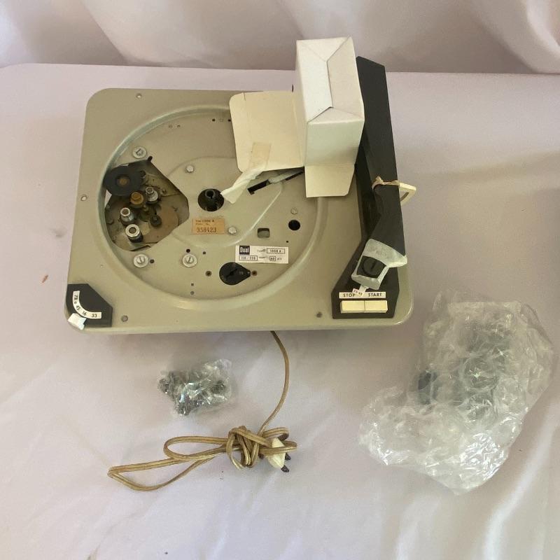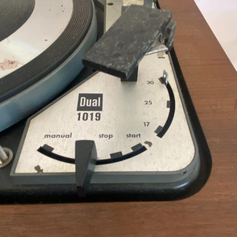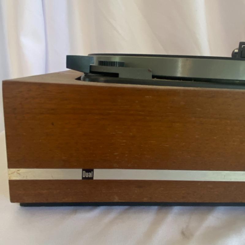 Lot includes three Dual turntables! First turntable is a Dual 1019 enclosed in wooden Dual base. Cords included but did not power on when tested. Lot also includes Dual 1008 record player in a charcoal and off-white case, with a leather-like handle on the side. Another Stand alone Dual 1008 turntable included in lot. Cords included as well and did not power on when tested. Cases have a few damage marks due to age and use. See photos.