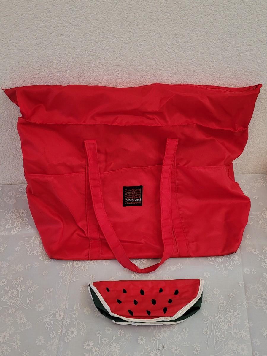 Lot 64: Vintage Crate & Barrel Tote Bag and Vintage Watermelon Zipper Pouch