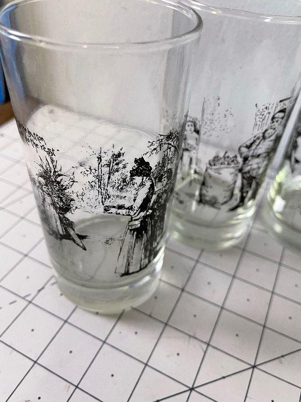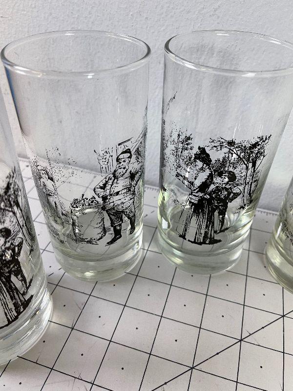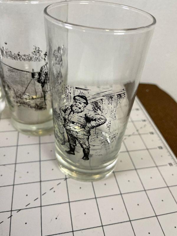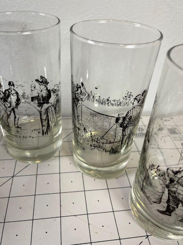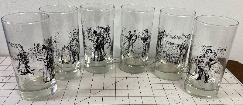 Lot #64 (6) Glass Tumblers with Victorian Scenes Printed on them