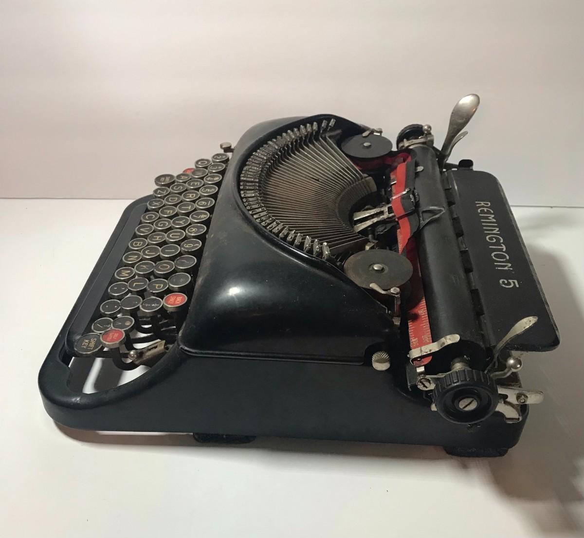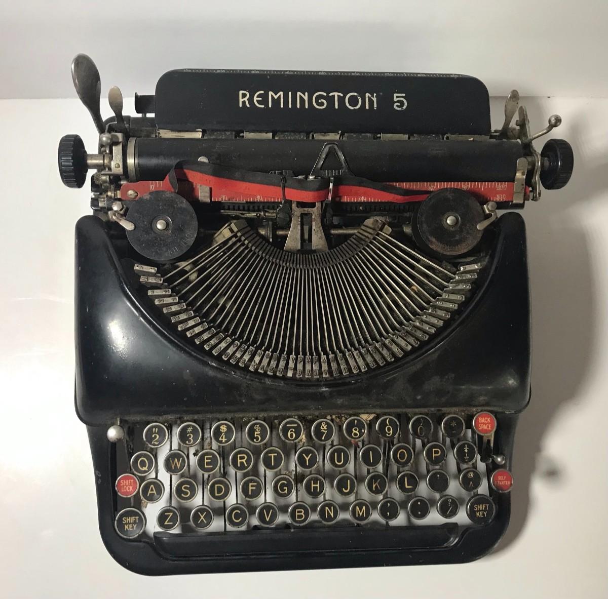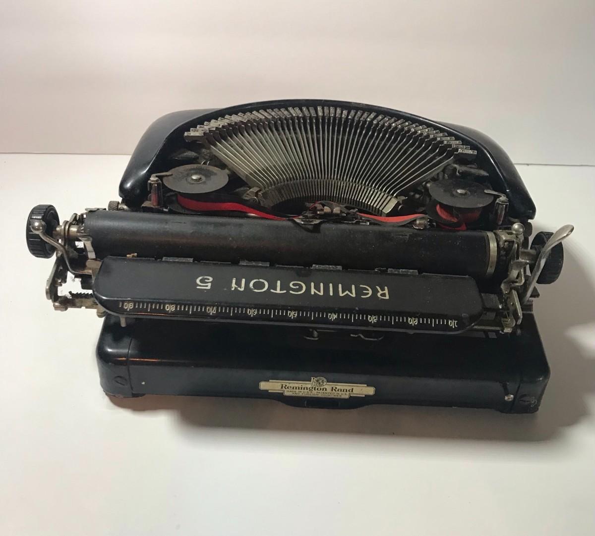 Remington Rand 5 vintage portable typewriter. Unkown working condition. The pictures show condition, measurements if taken, and what is included in the lot. Due to the large amount that we photograph and the time frame, we are not always able to take measurements. All items unless noted, are pre-owned and have been used. If you purchased furniture, you must bring help. We do not allow one person to carry large furniture out on their own. Bring help, tools and a truck for the safety of our client’s homes, and your personal safety. Company policy. Thank you.