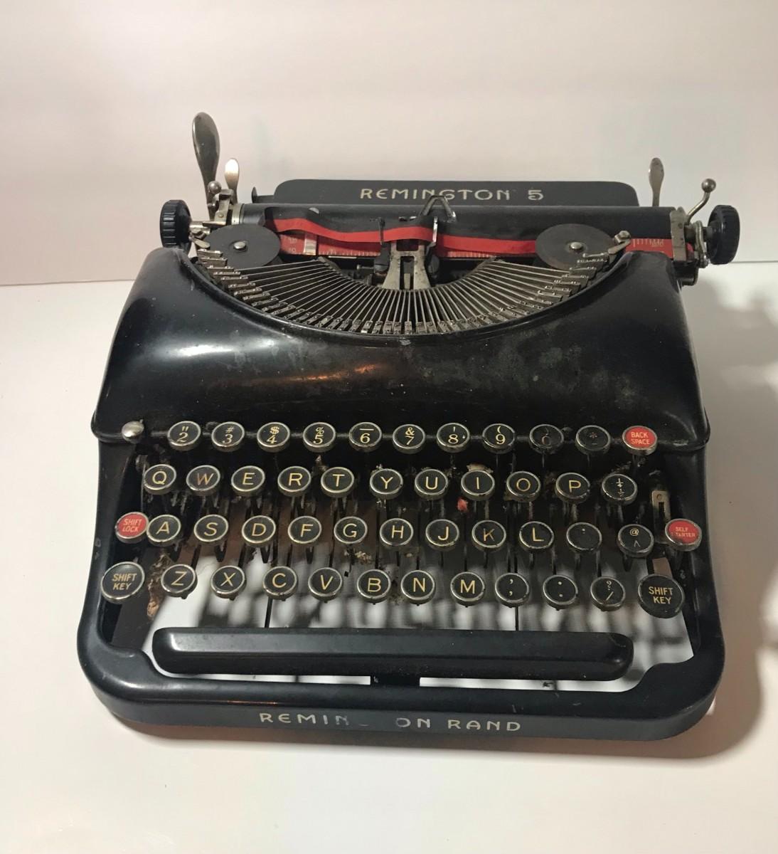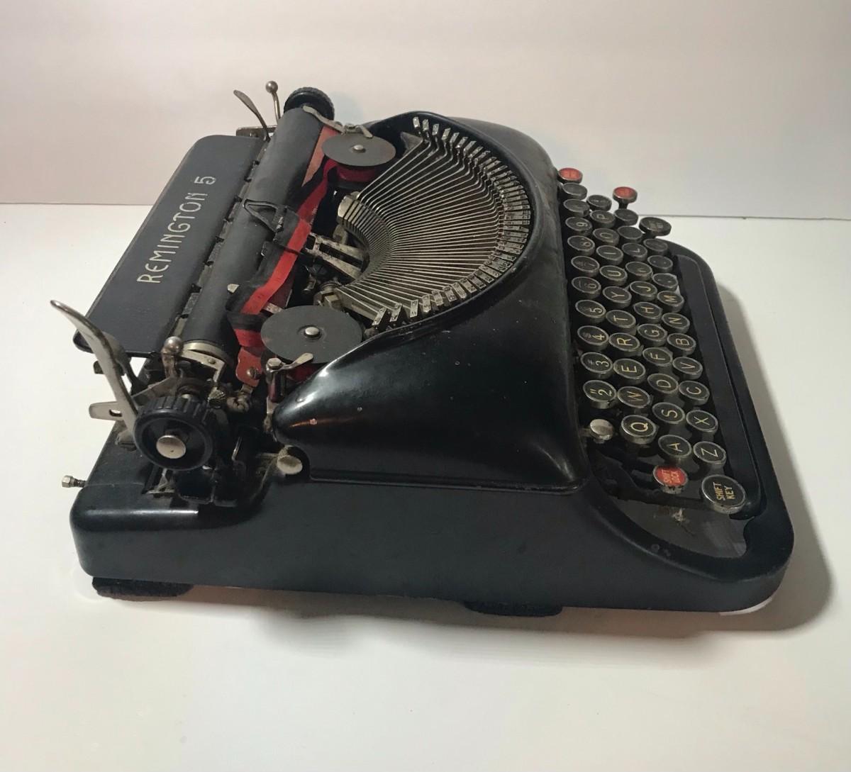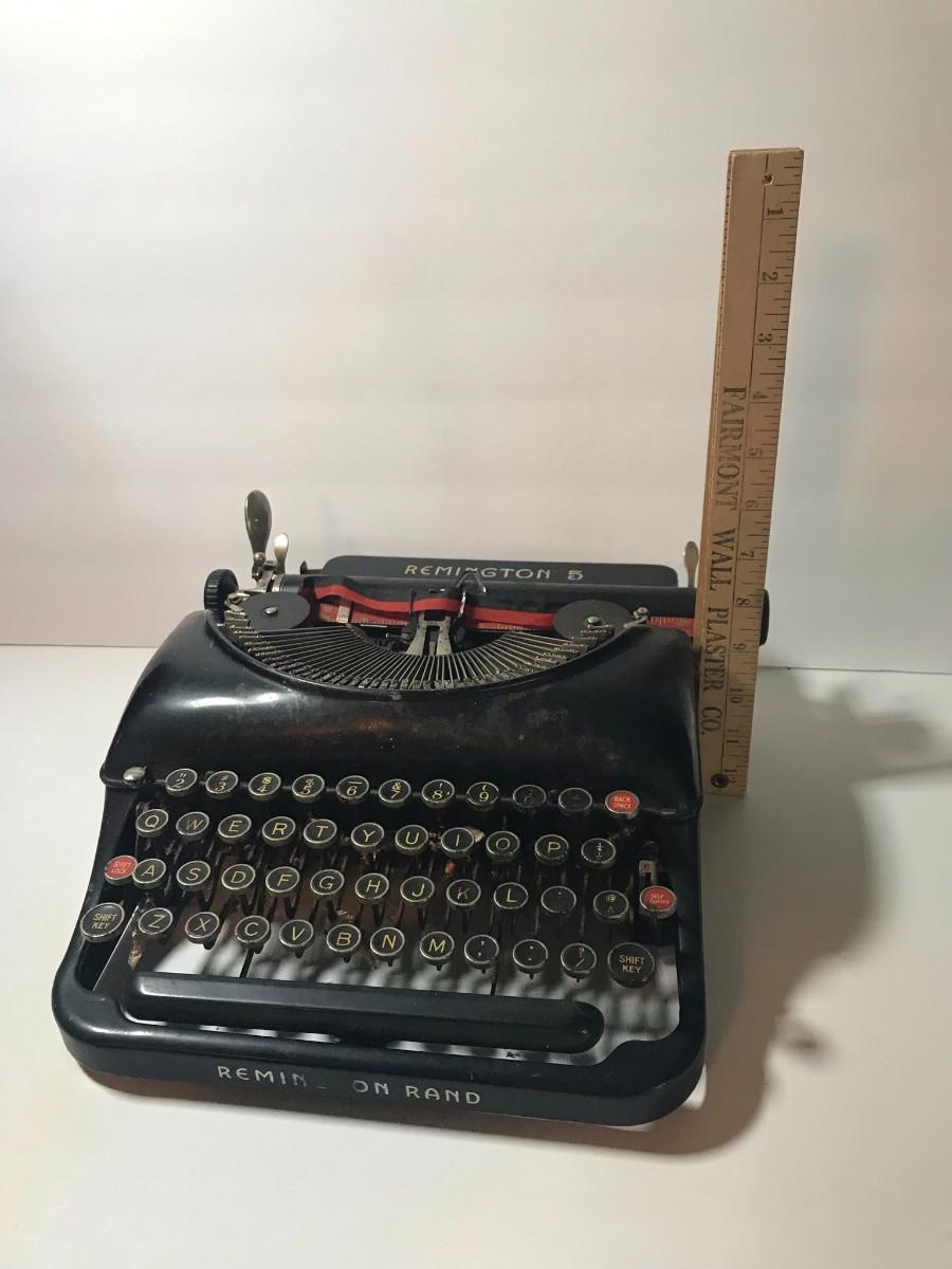 Remington Rand 5 vintage portable typewriter. Unkown working condition. The pictures show condition, measurements if taken, and what is included in the lot. Due to the large amount that we photograph and the time frame, we are not always able to take measurements. All items unless noted, are pre-owned and have been used. If you purchased furniture, you must bring help. We do not allow one person to carry large furniture out on their own. Bring help, tools and a truck for the safety of our client’s homes, and your personal safety. Company policy. Thank you.
