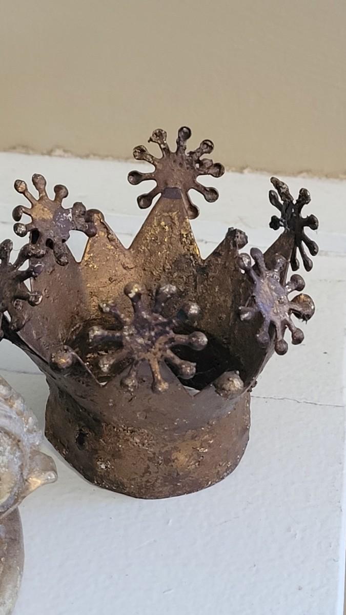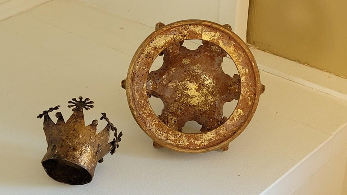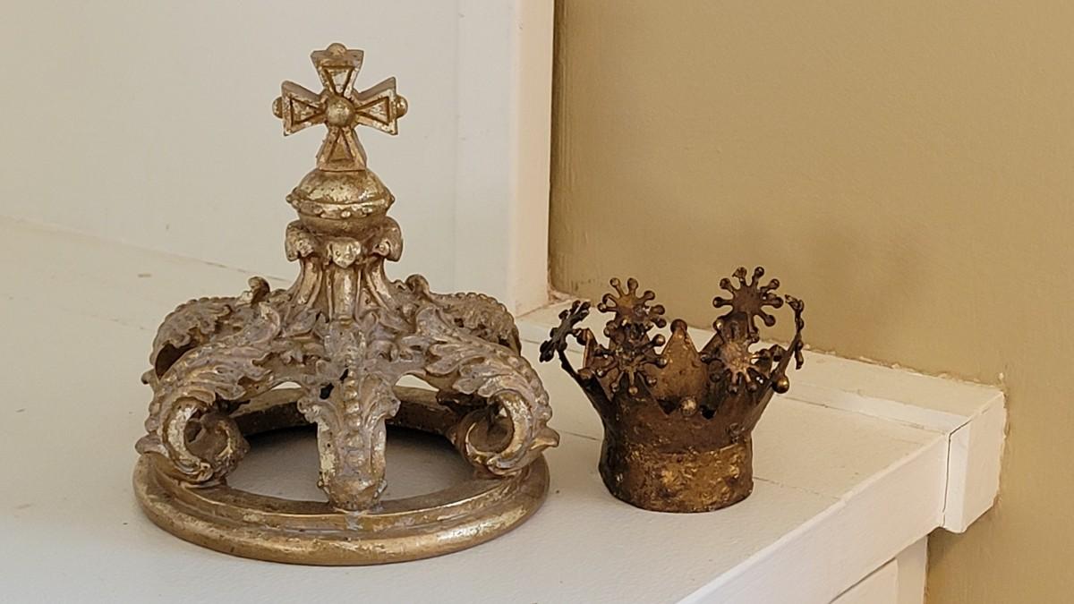 Lot 64: (2) Crowns - one gold gilt religious crown and the other handmade metal