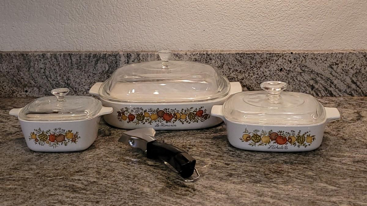 Lot 64: CORNING WARE 'Spice of Life' Casserole Dishes with Lids (3) & Handle