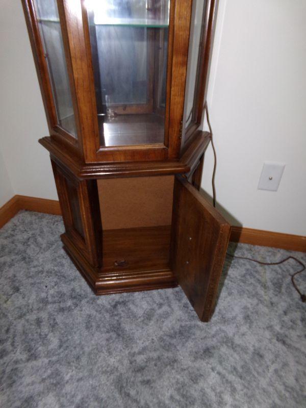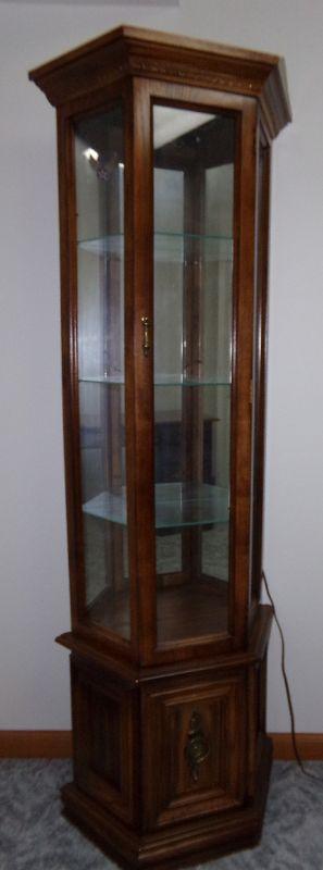 LIGHTED CURIO CABINET WITH STORAGE CABINET 20" X 8" X 70"
