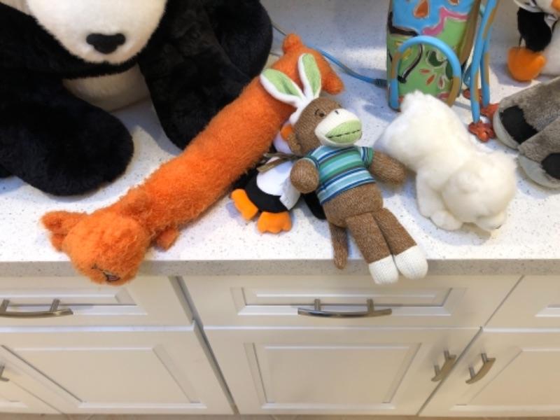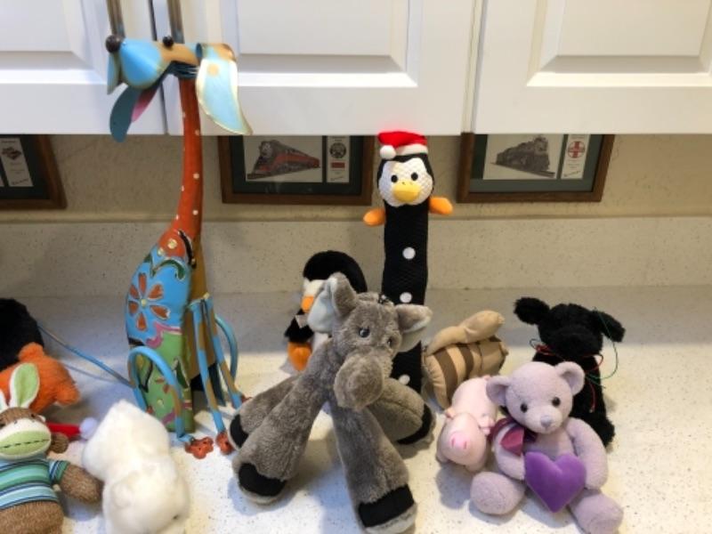 Lot 64. Assorted stuffed animals (20); painted metal dog figure--WAS $35““NOW $17.50
