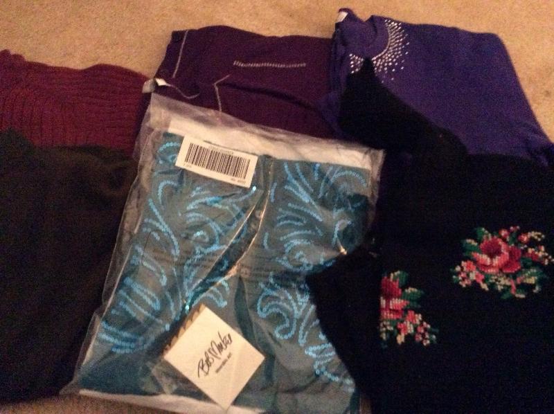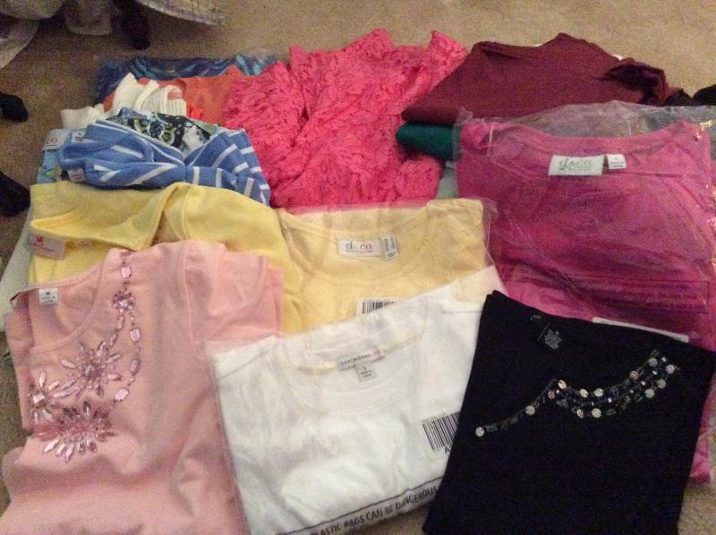 Women’s clothing including Bob Mackie Wearable Art, The Quacker Factory, and more. Mostly small and medium sizes,