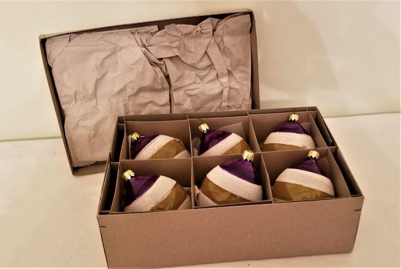 Box of 6 matching vintage Christmas tree ornaments - each measures about 5" long. Good condition.