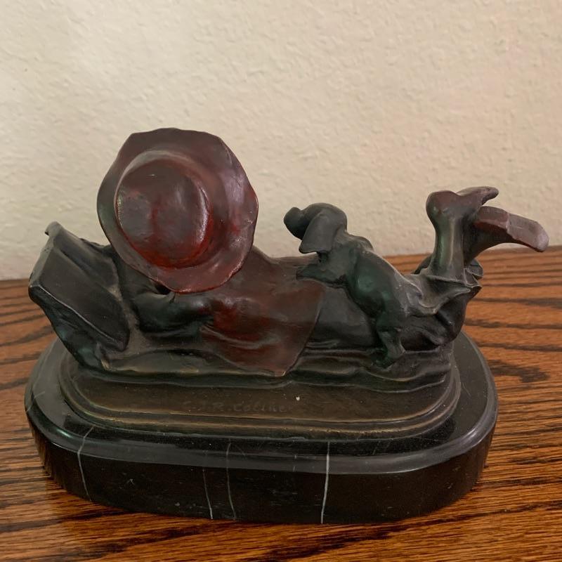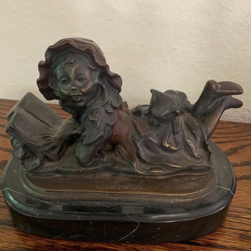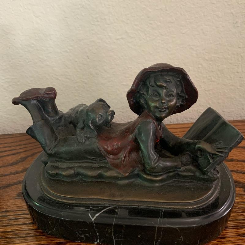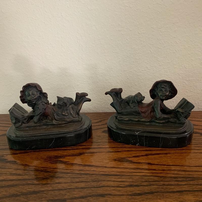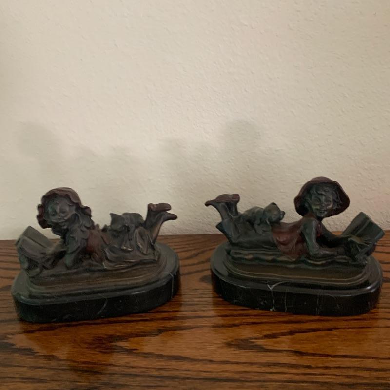 BRONZE BOY AND GIRL BOOK ENDS W*8 H 5.5"