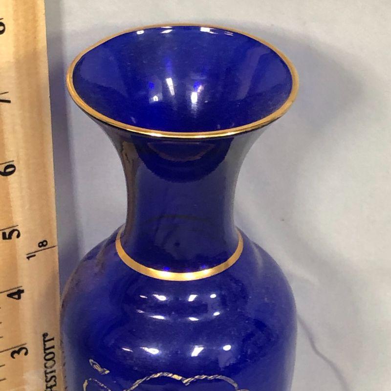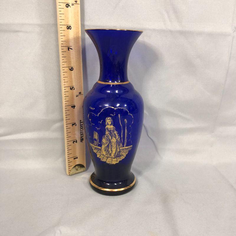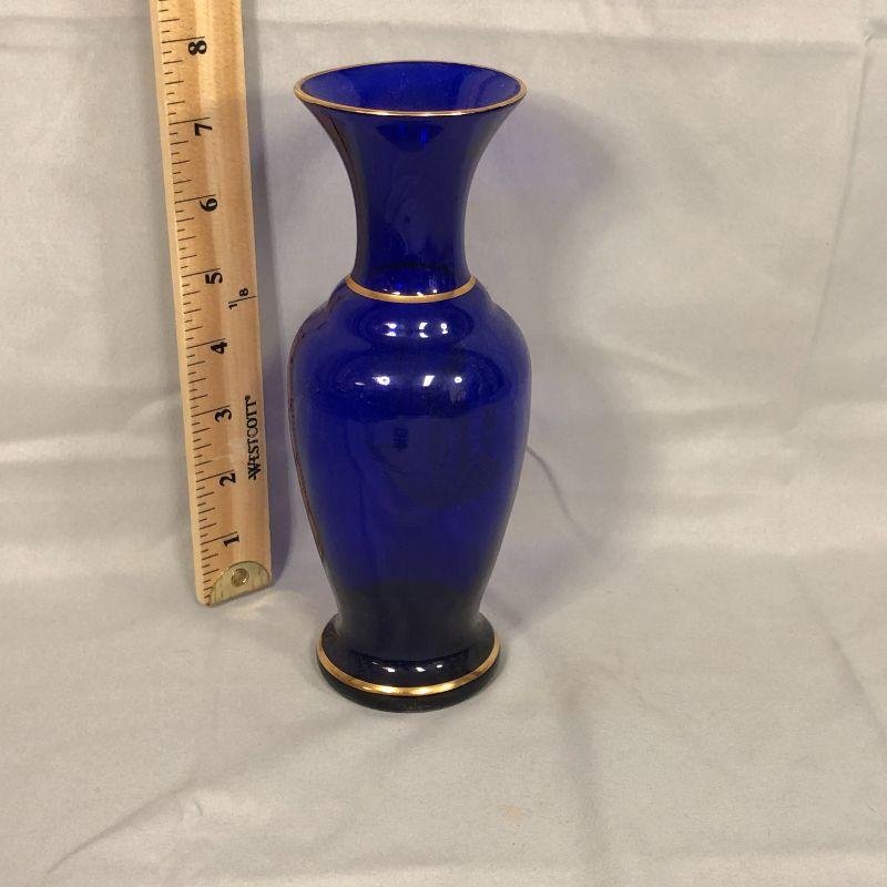 This vase is in excellent condition with no issues to the glass or the paint. It stands about 8" tall and ready to catch the sunlight in your room.