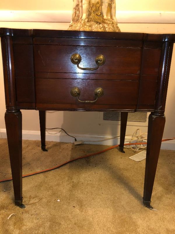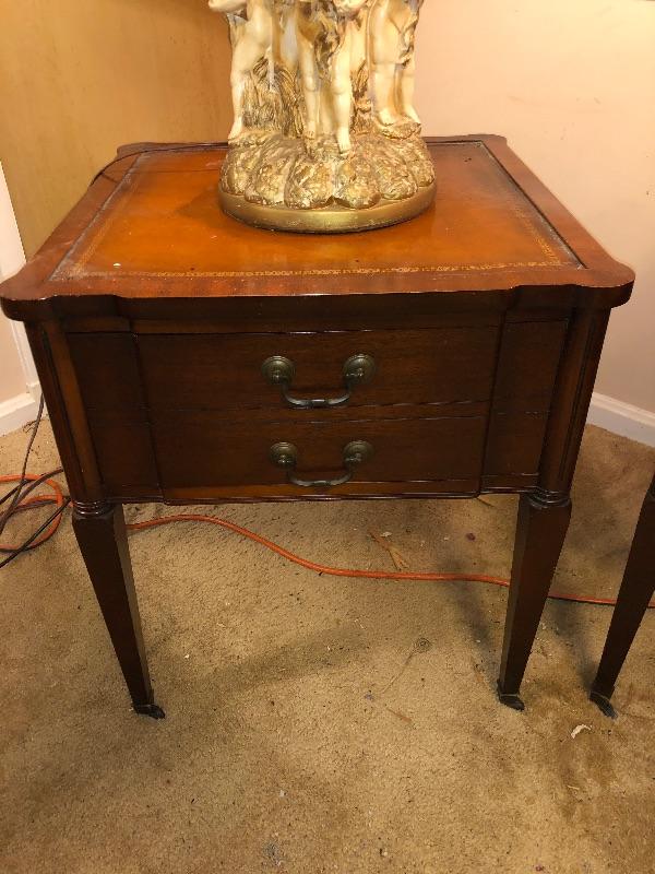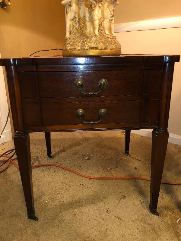 Set of 2 matching end tables - On wheels and with drawer.