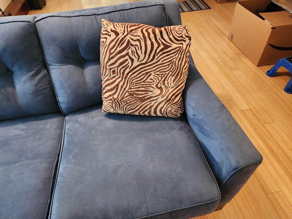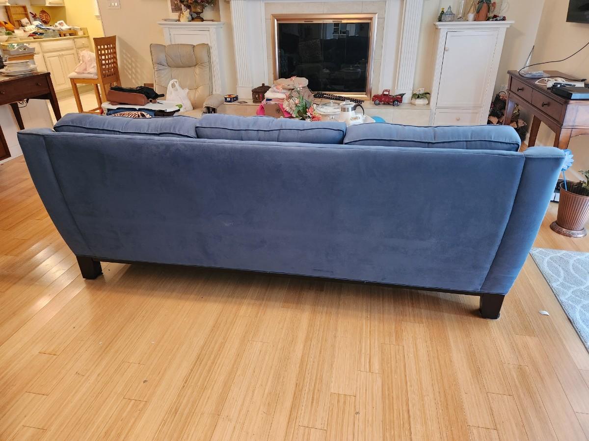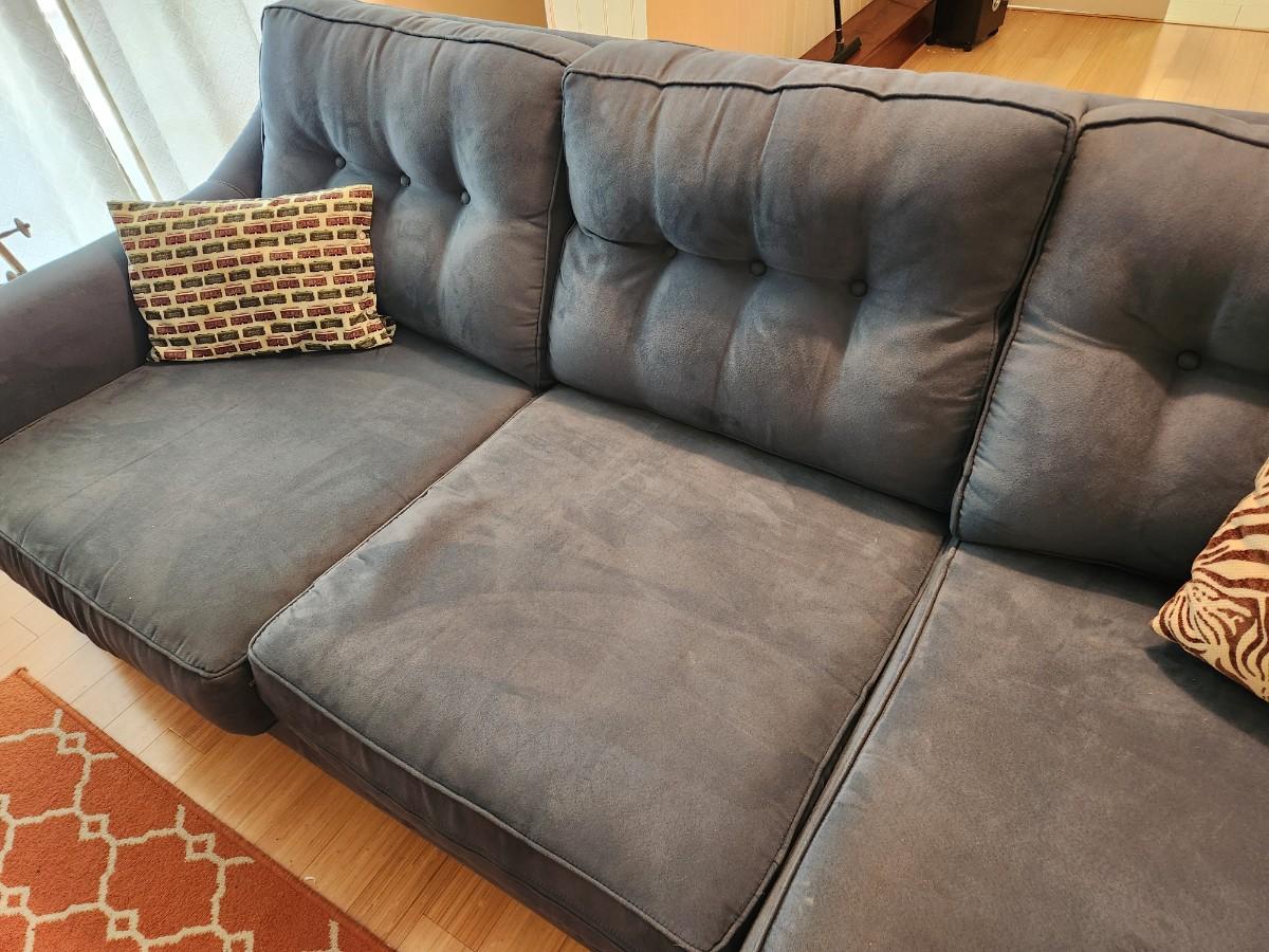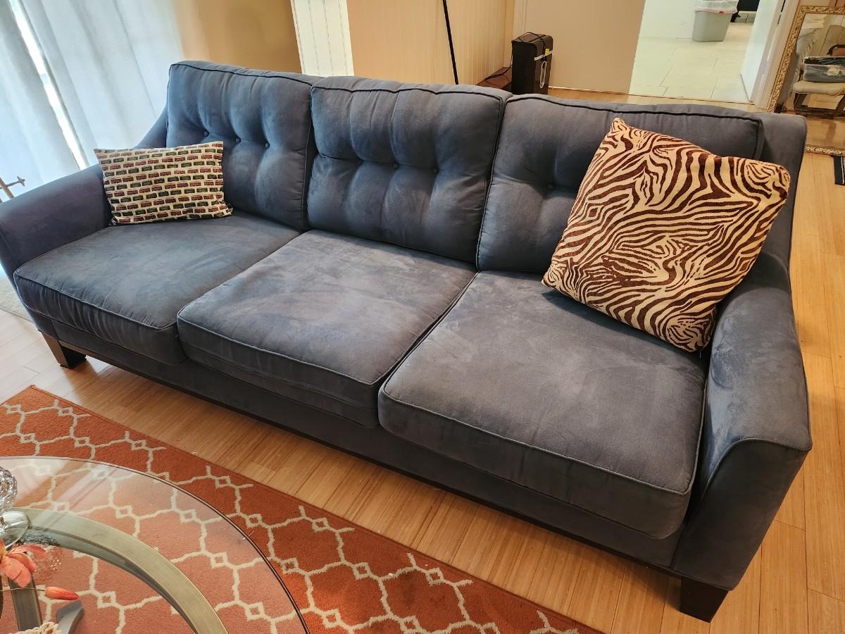 Nice 3 cushion Cindy Crawford brand casual sofa - great condition. 7 feet across, 38" deep, 34" tall at the back.