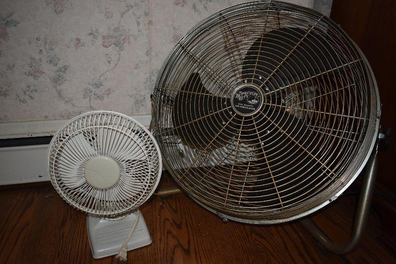 Hampton Bay floor fan and a small table top fan. Untested.