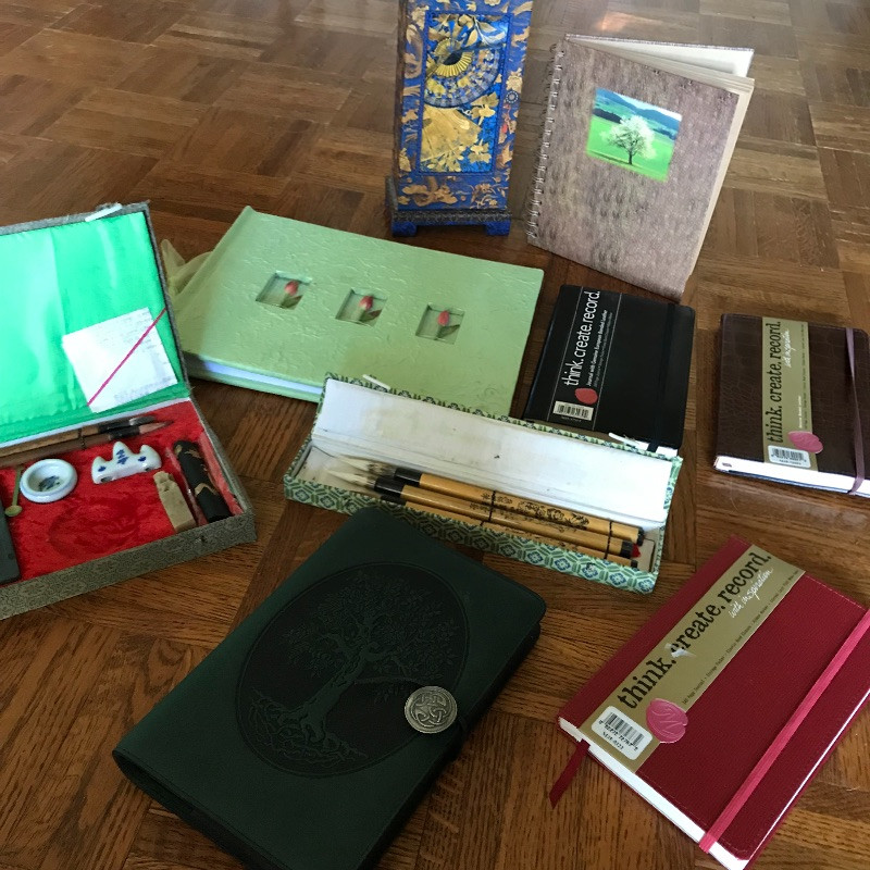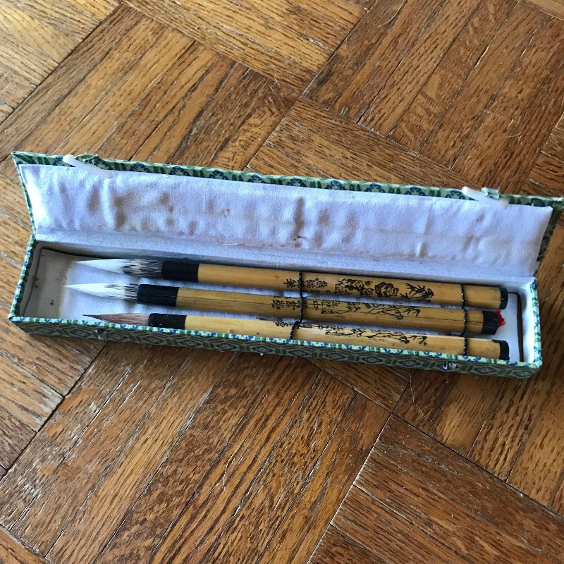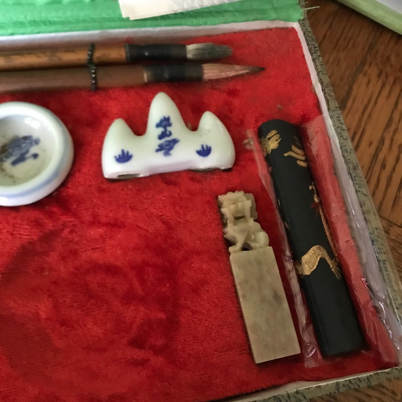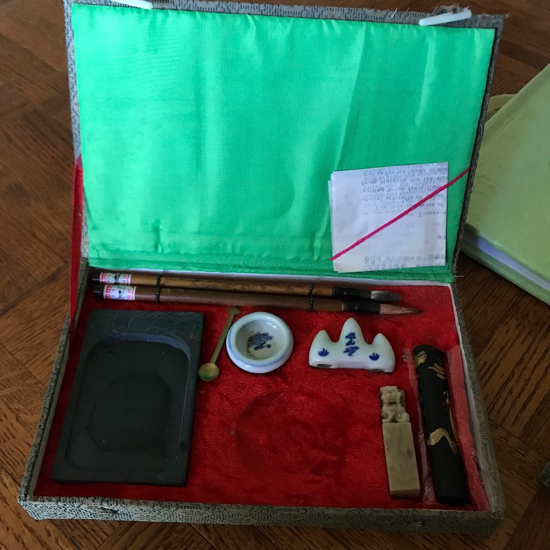 The written word won't be a lost art form for you with this lovely lot that includes unique and useful items for the aspiring or professional writer. You'll find a set with brushes and ink bowl and brush stand with a few other knick knacks to help inspire you. Also Included are five journals, a stationary set, Chinese paint brushes and writing supplies, and a book perfect for pressing plants or storing treasures memories, see images. Shipping available.