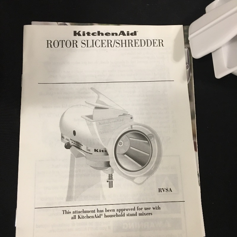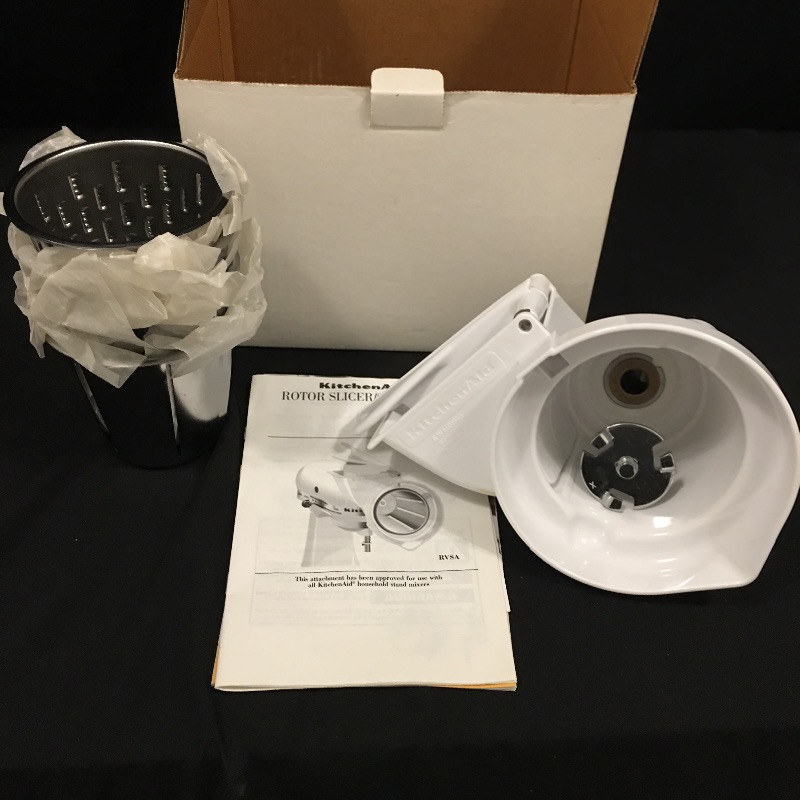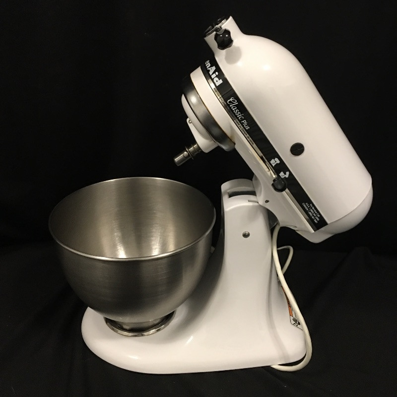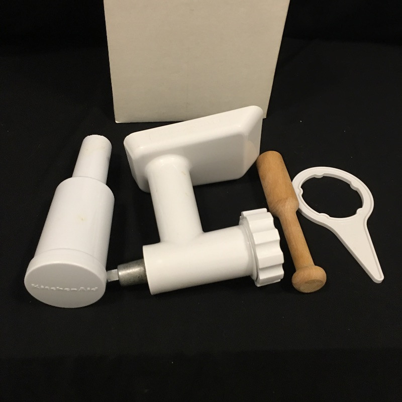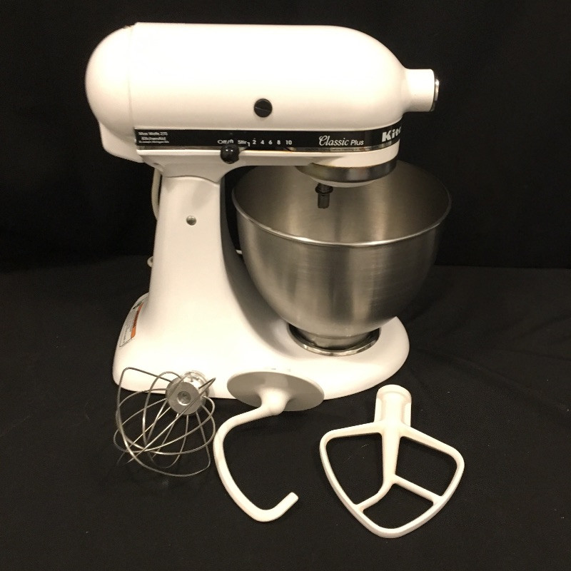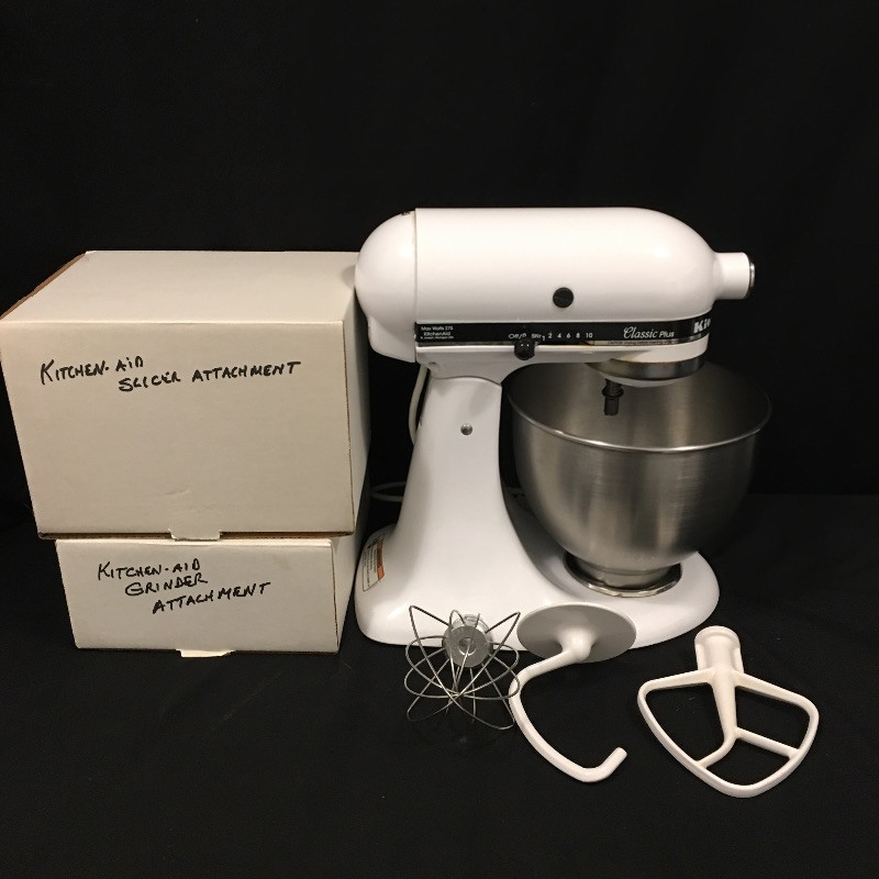 Cake making and more will be a breeze with this Kitchen Aid mixer that comes with attachments that includes a grinder, slicer shredder and three beaters. .