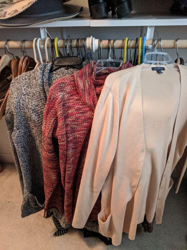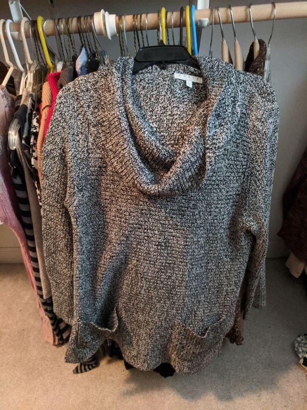 This large lot includes some fabulous name brands and even some locally hand-made items and includes sweaters, shirts, blazers and more, see images. There is both medium and large sized items here.