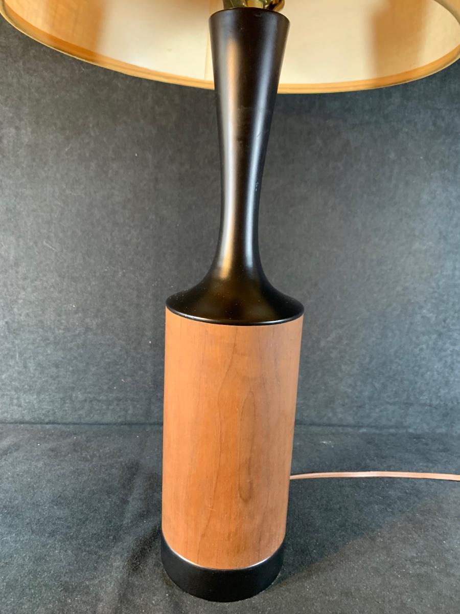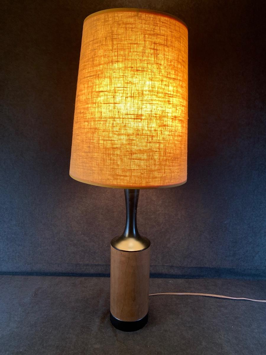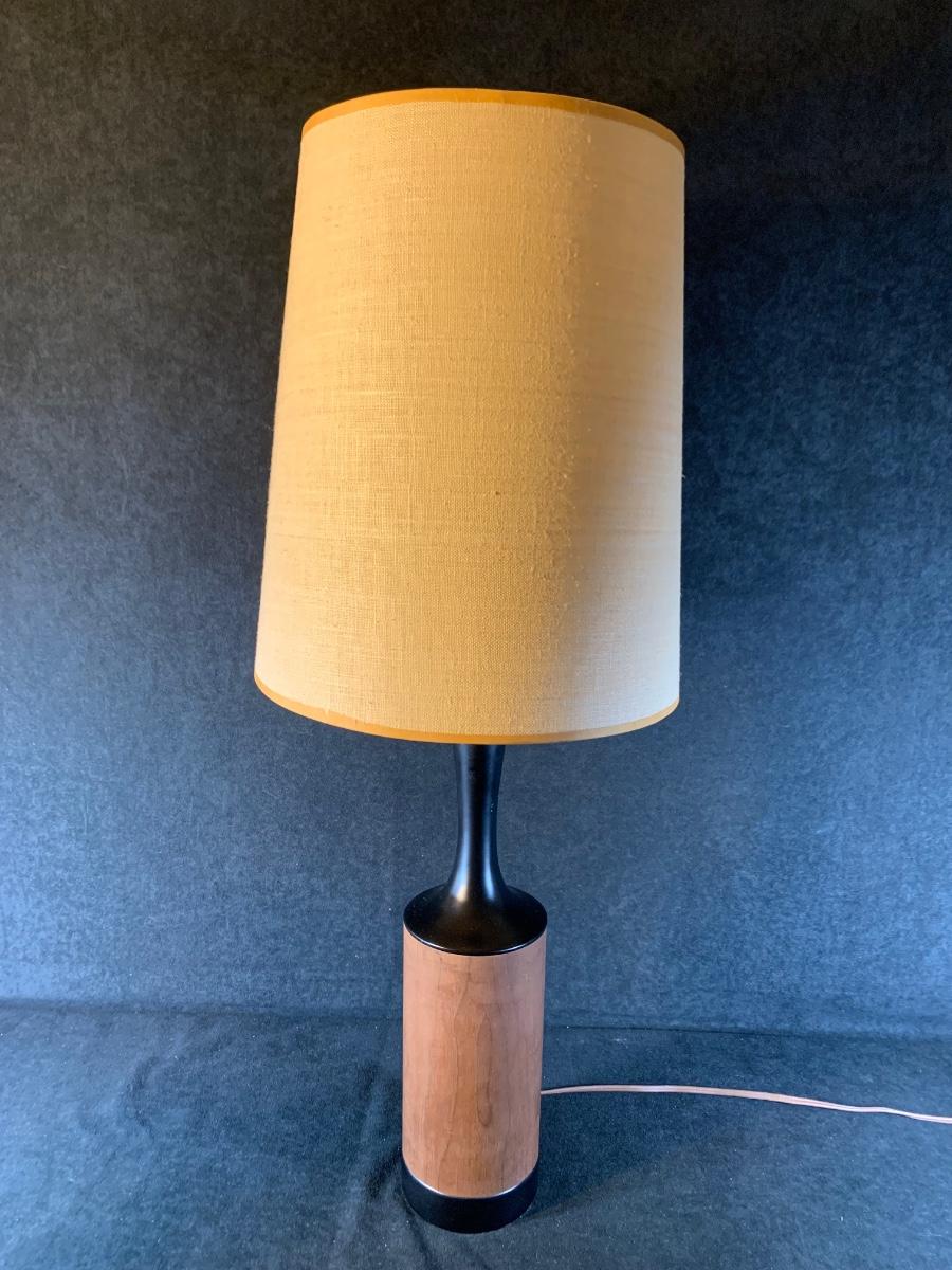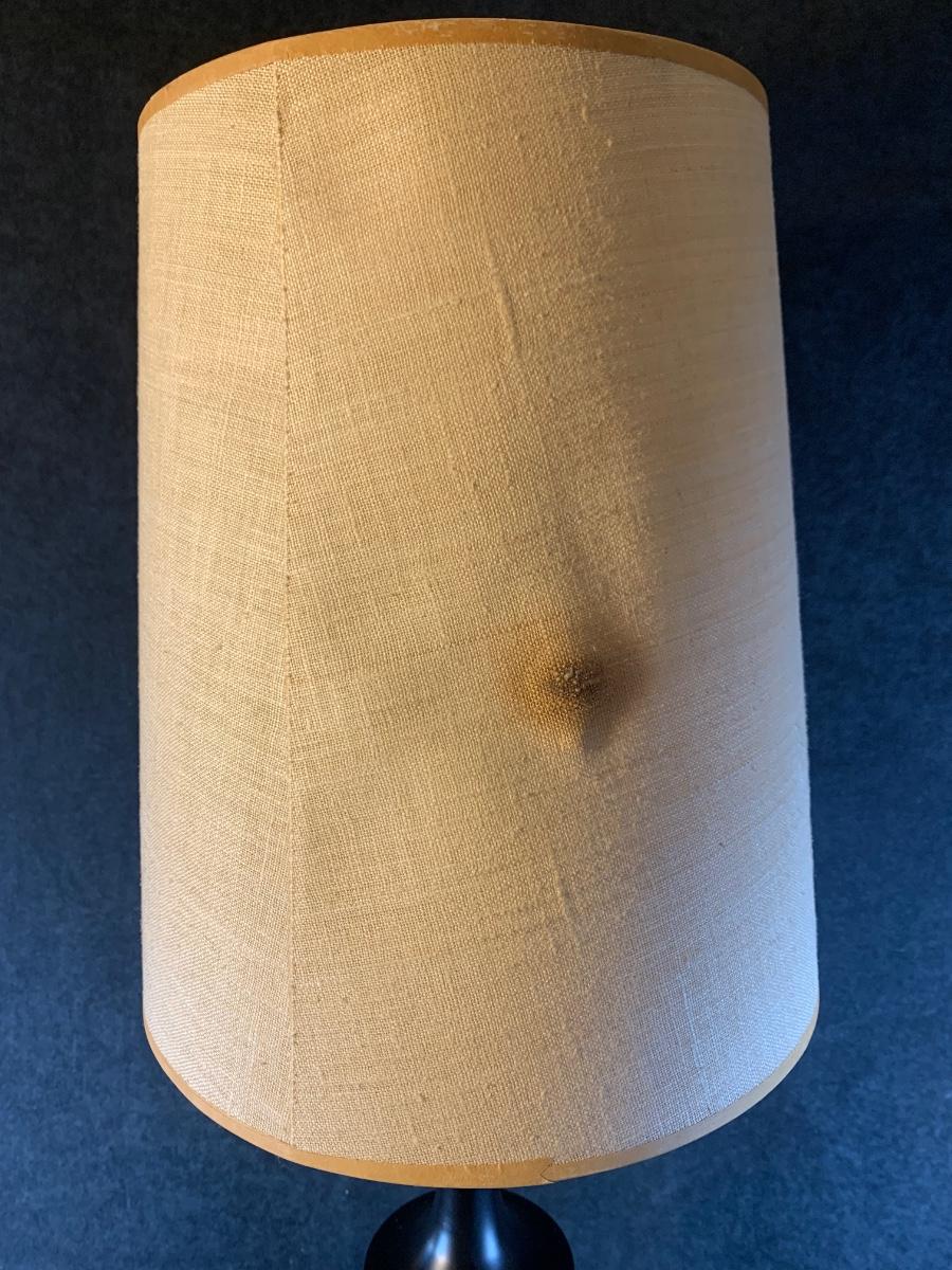 Black and brown lamp. Measures 27", Lampshade has a small burn.