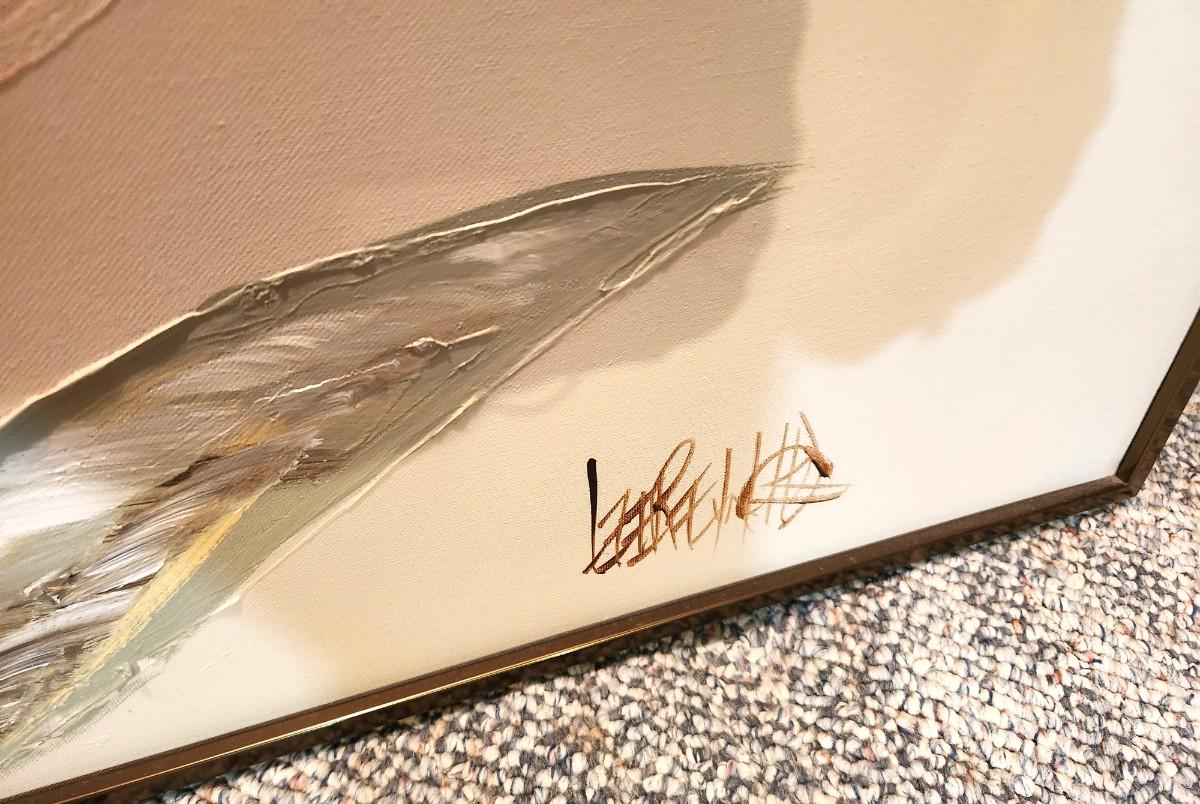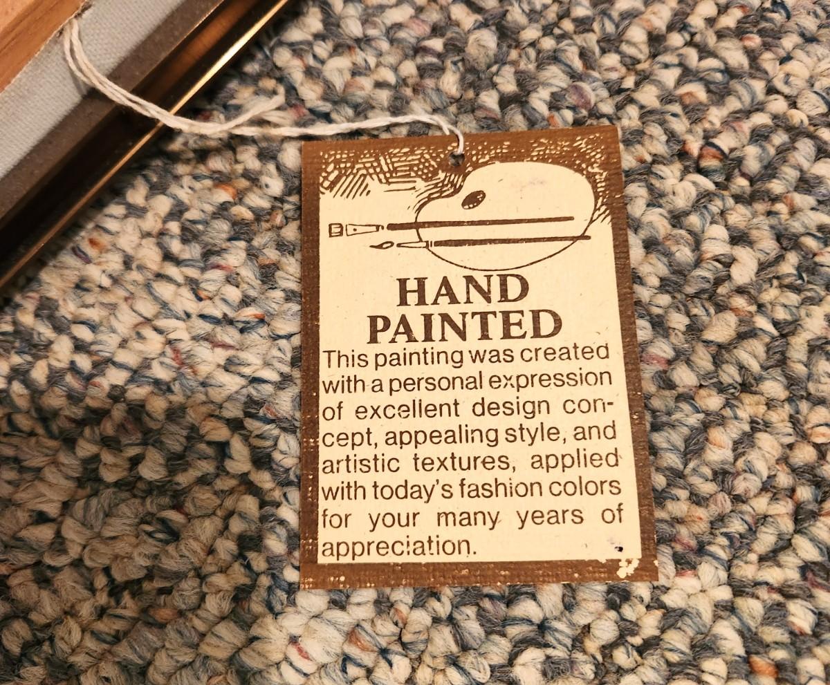 Large Decorative painting (hand done) - signed. Lotus Blossom motif. 5 feet across, 4 ft. tall, good condition.