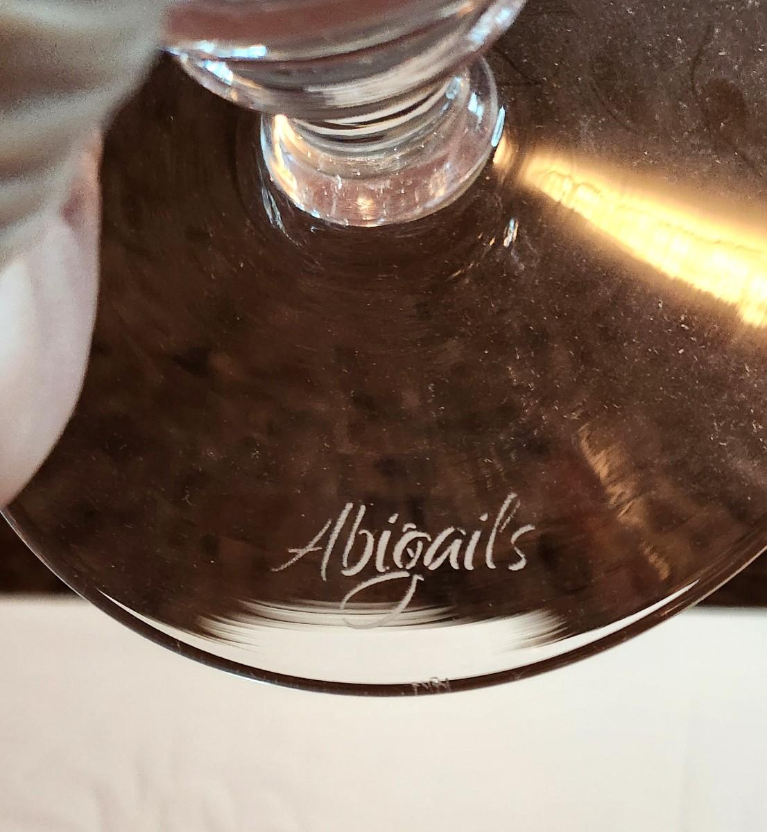 Hand blown glass Hurricane lamp/candle holder by Abigails (see signature) - retails for over 200.00. Good condition.
