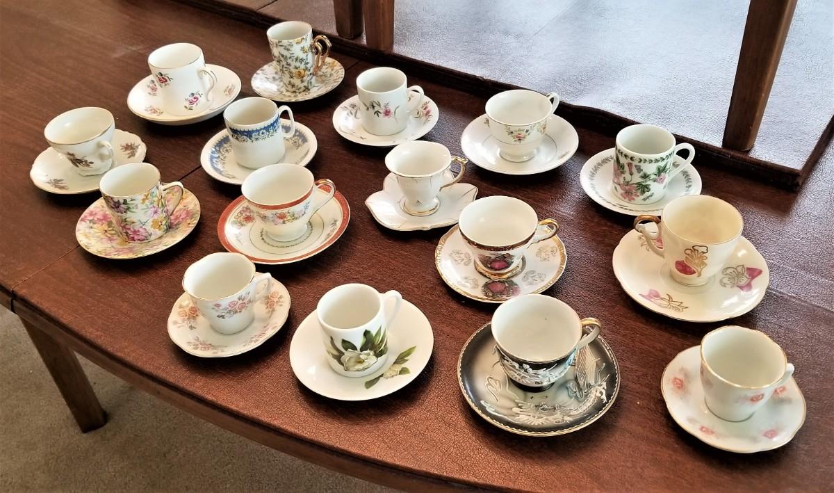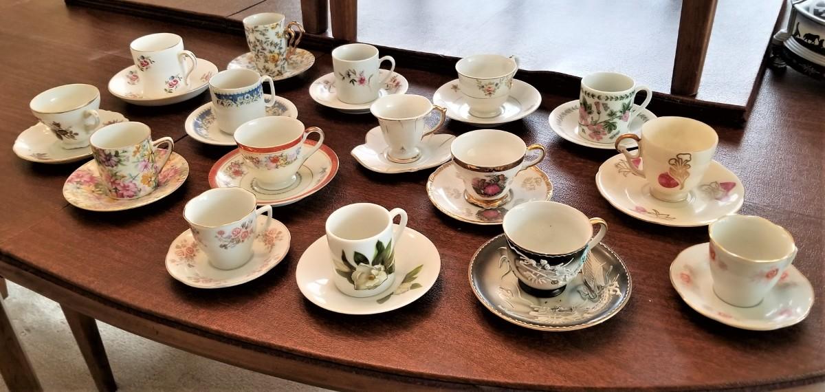 You get all you see here - 16 sets in all (demitasse cups/matching saucers). All in good condition. Good dealer lot here