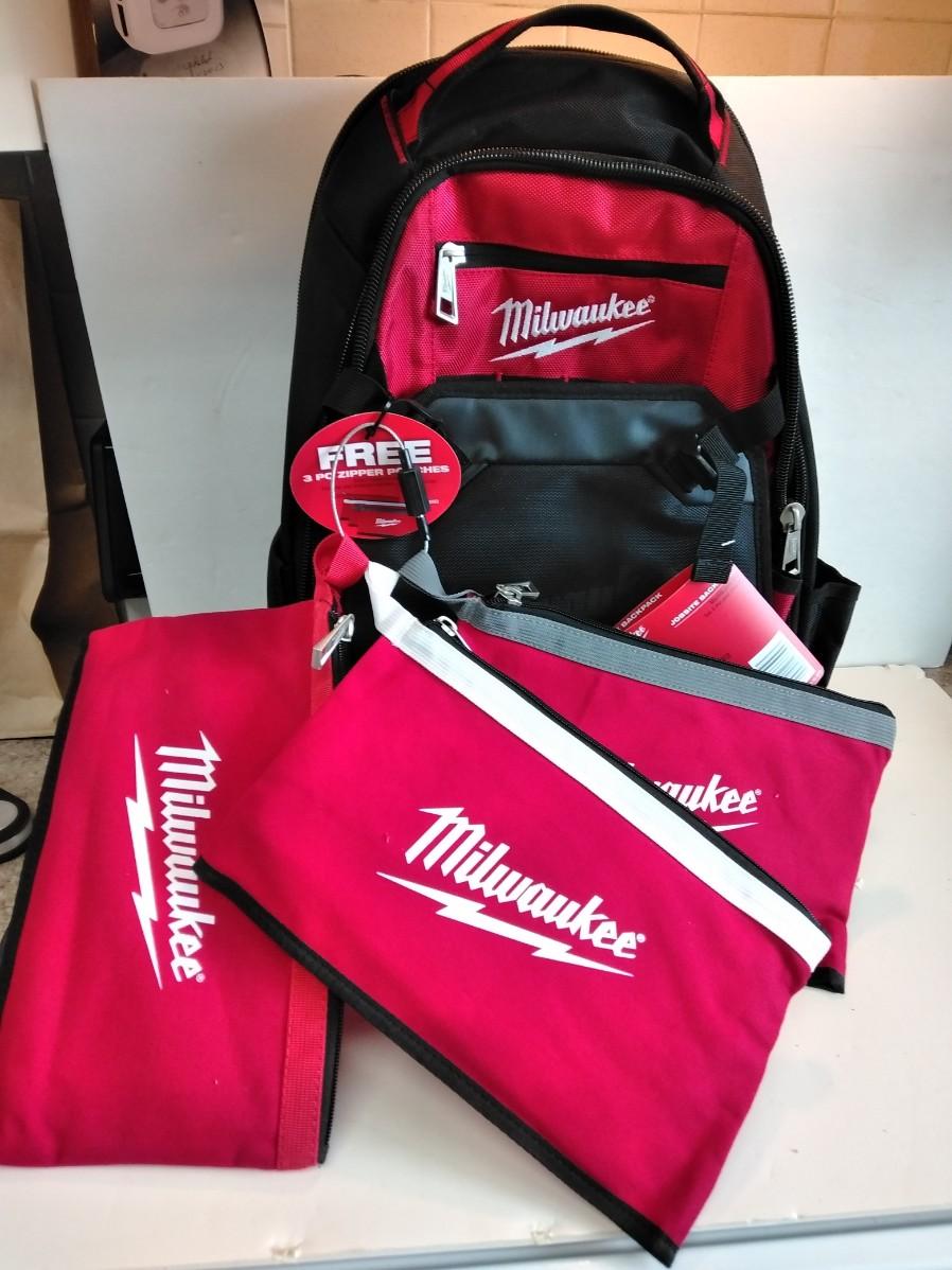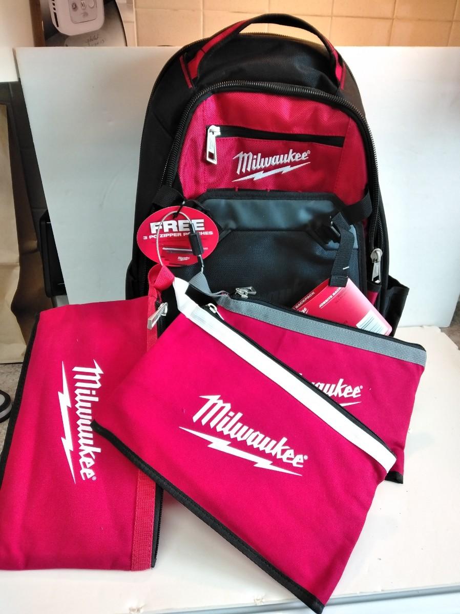 NEW MILWAUKEE JOBSITE BACKPACK WITH 3 PIECE ZIPPER POUCHES