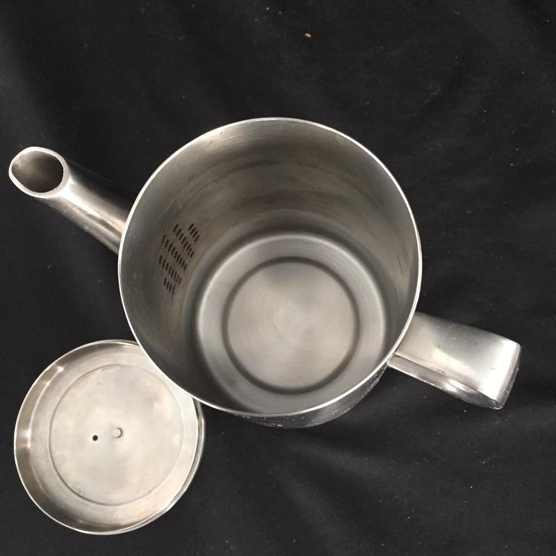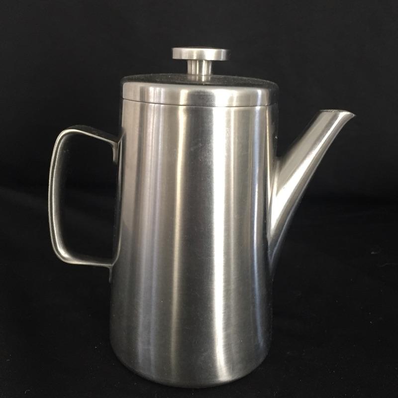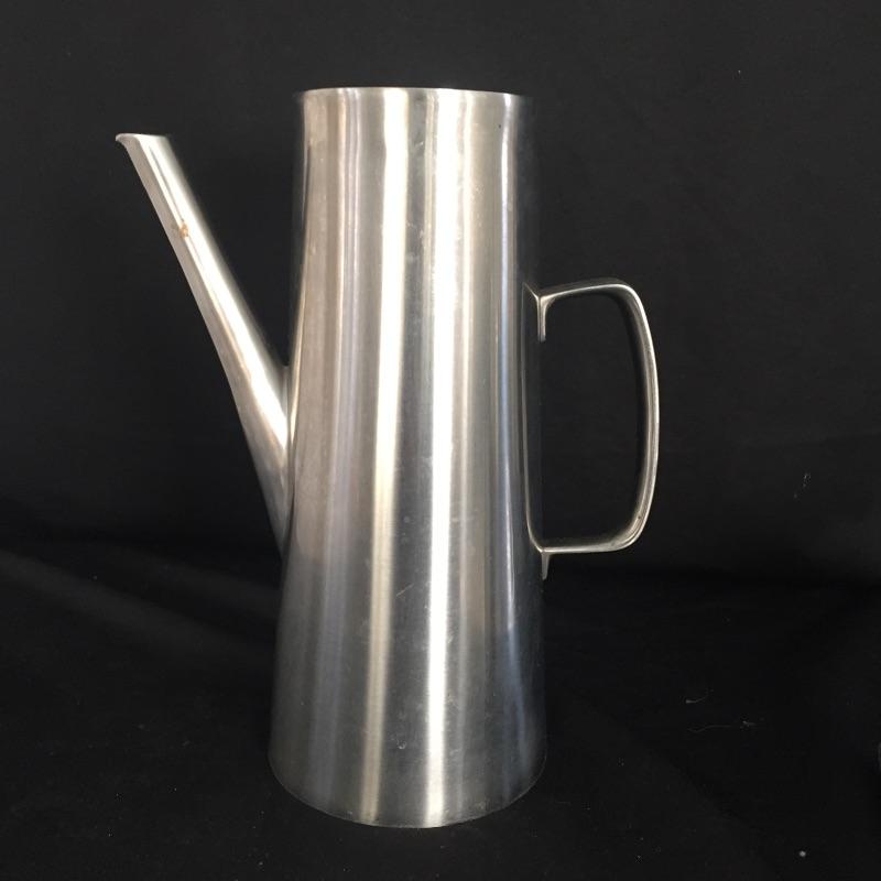 Sleek Modern Old Hall tea set includes pair of pitchers , sugar bowl , cream er and tray. Largest pitcher measures 10.5” tall. Shipping Available