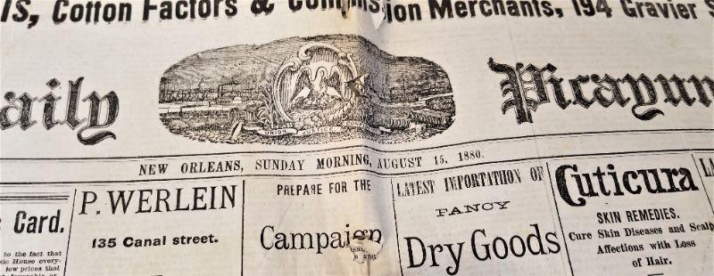 Lot #64  Original copy of the Daily Picayune, August 15, 1880