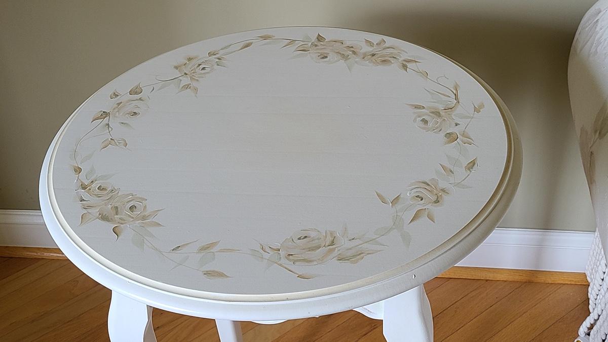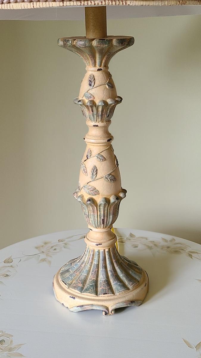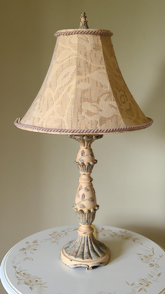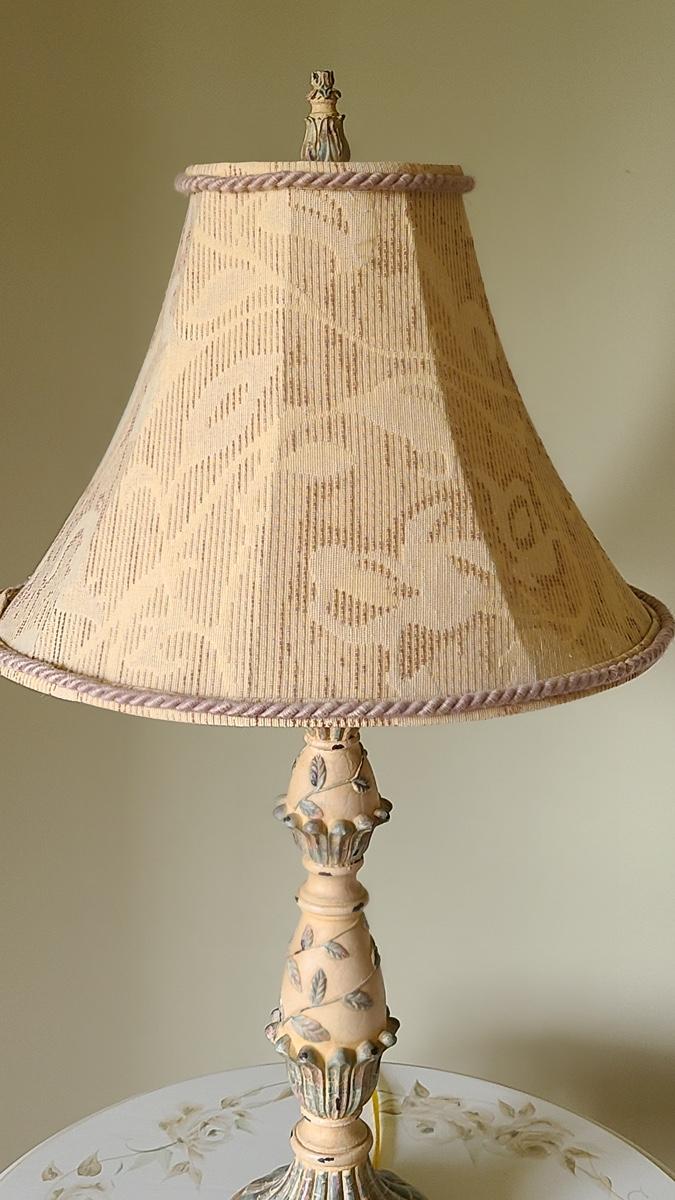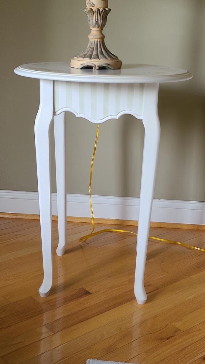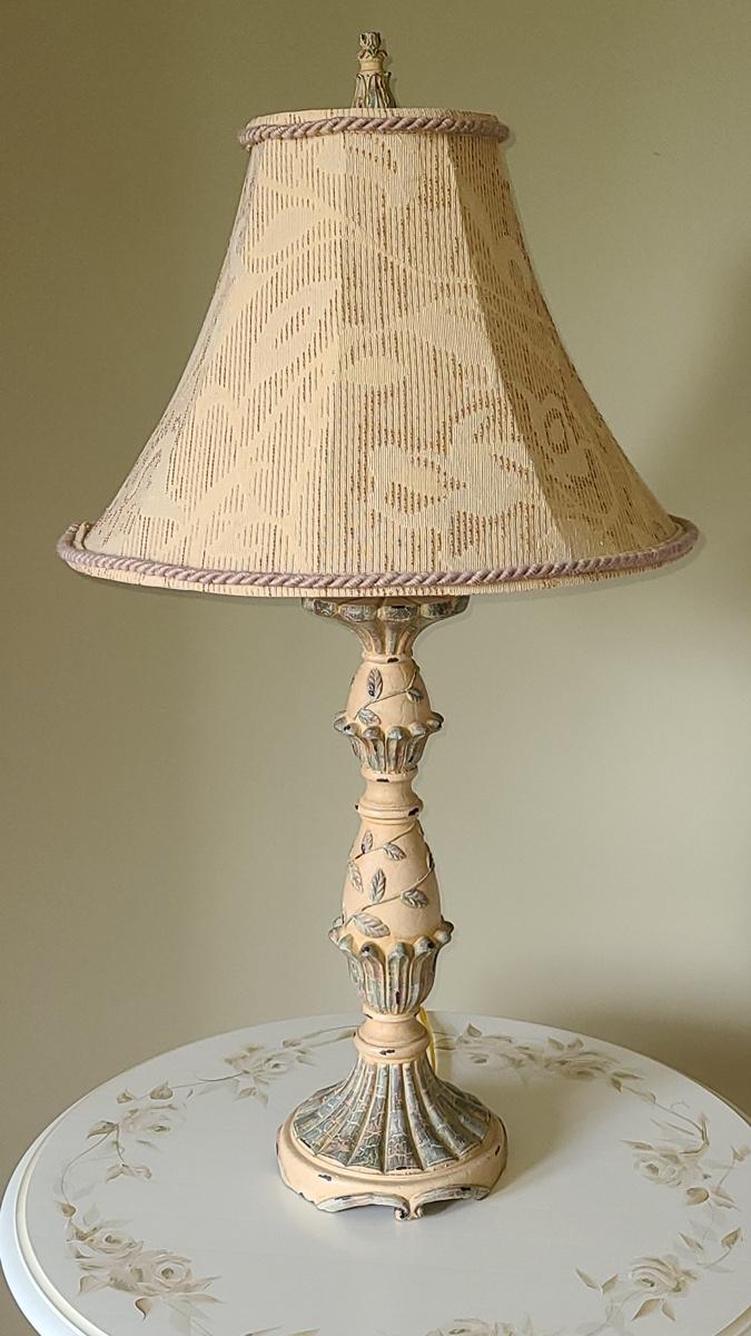 Lovely painted accent table with decorative lamp. Perfect accents for any room. Please see all pictures for content of the lot, condition of the lot, and measurements if taken. Pictures are the best representation of the items listed and items are untested unless indicated in description. Thank you for looking and have fun bidding!