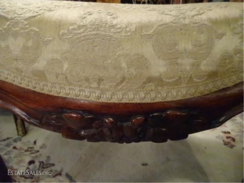 LOT 64: PAIR ANTIQUE VICTORIAN PARLOR CHAIRS, CARVED WOOD FRAMES