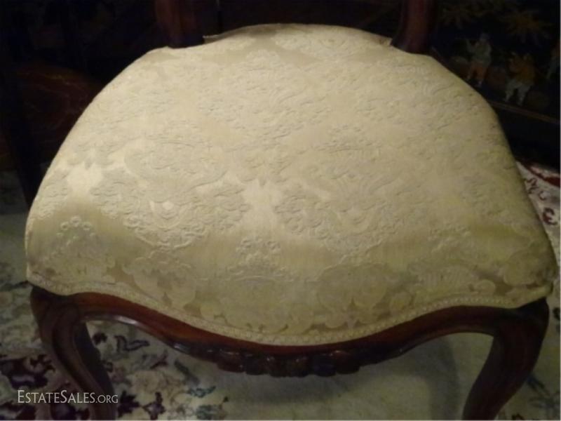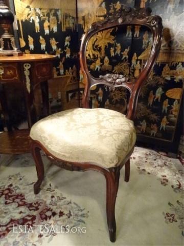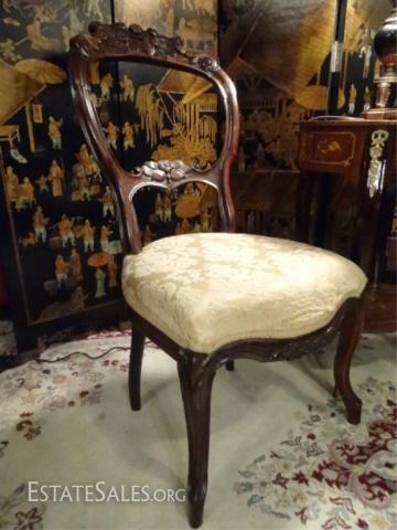 LOT 64: PAIR ANTIQUE VICTORIAN PARLOR CHAIRS, CARVED WOOD FRAMES, GOLD UPHOLSTERED SEATS, VERY GOOD CONDITION, SKU894.07