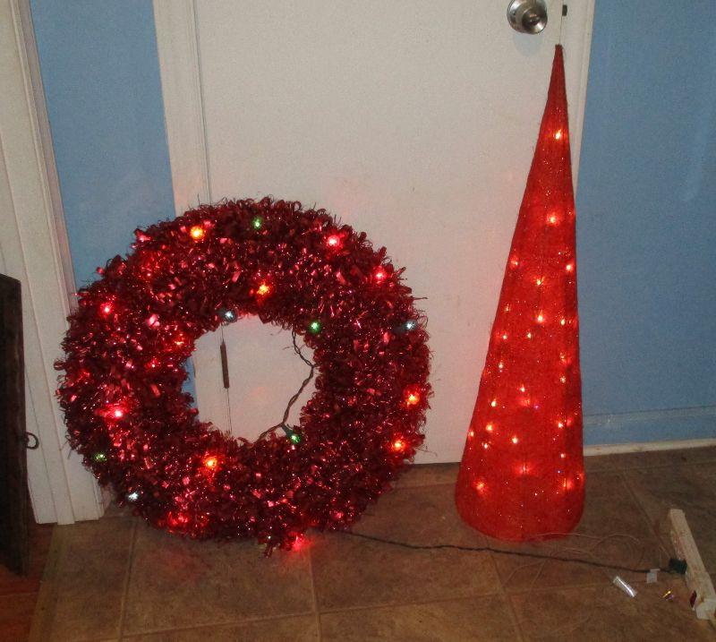 Lot 64 - Red Lighted Christmas Tree & Wreath LOCAL PICKUP ONLY