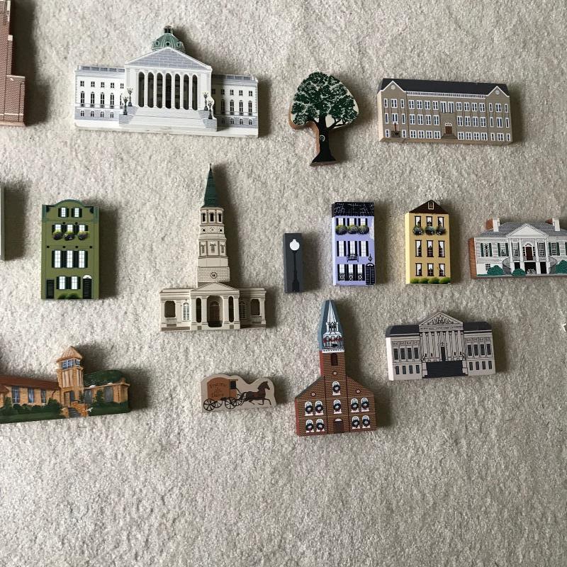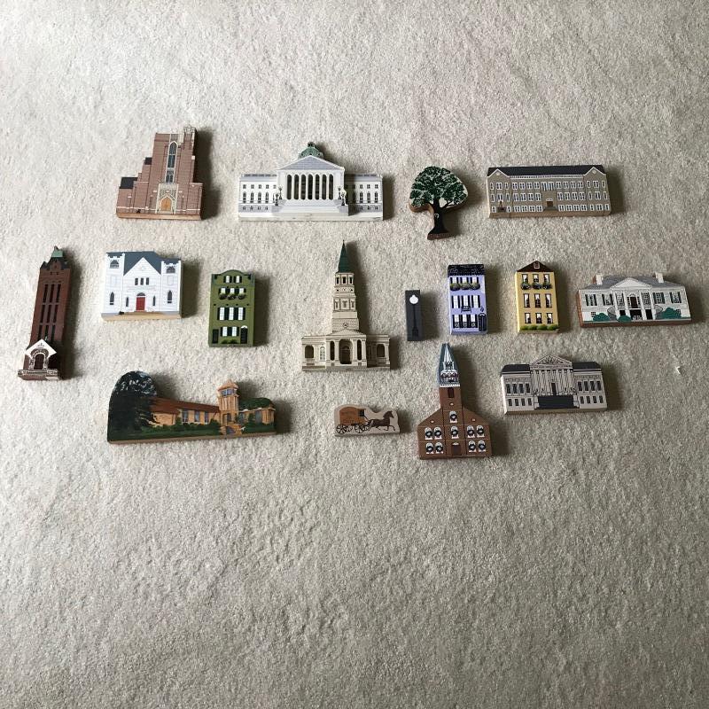 Cute little 16 piece set of a city scape. Pieces are from different locations. Most are from Charleston made by Shelia. Others includes the Cats Meow Christmas series and more. See photos. Shipping available.