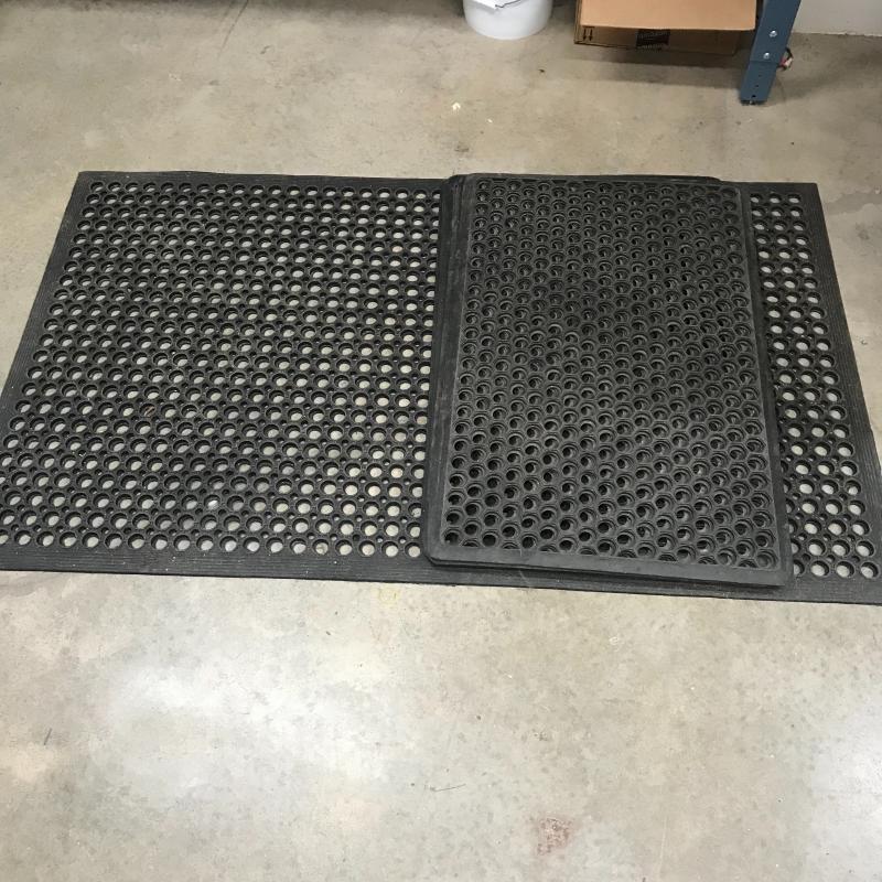 5 Relief Rubber Mats for concrete floors. Large one measure 60” x36” and 4 smaller ones.