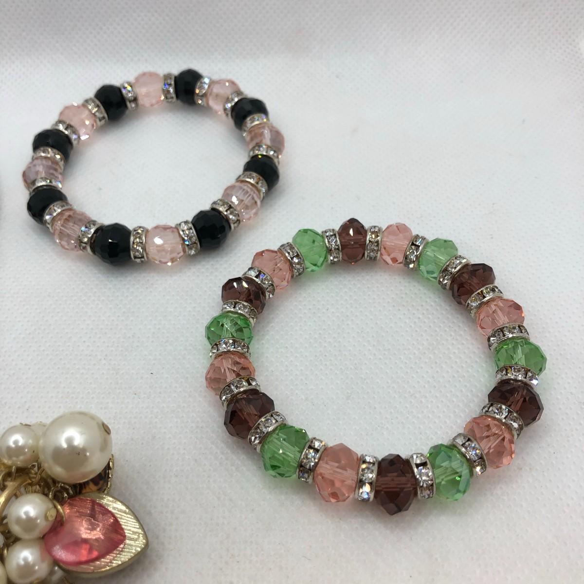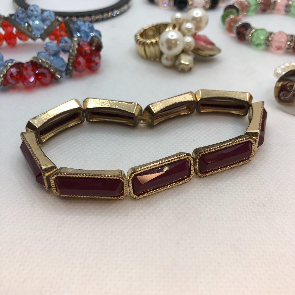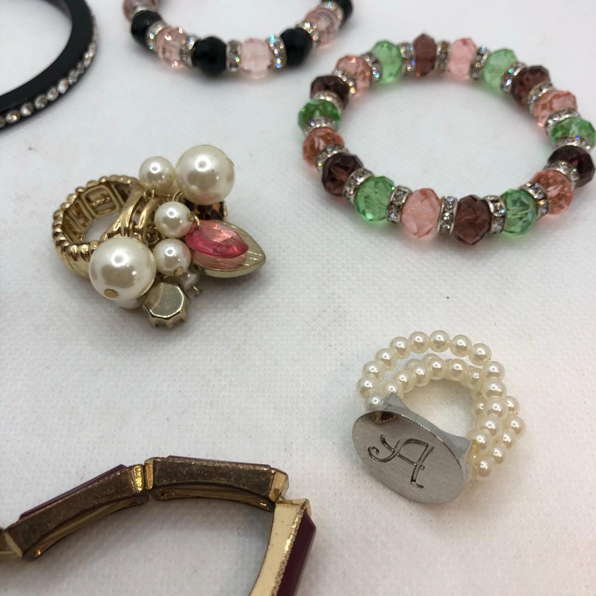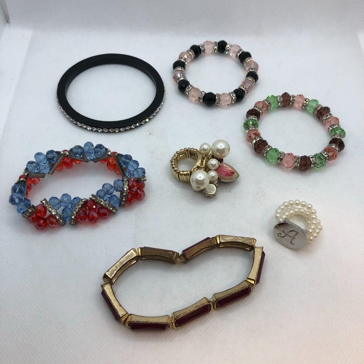 These are all in great condition. They all have stretchy bands except for the black bangle bracelet in the back left corner.