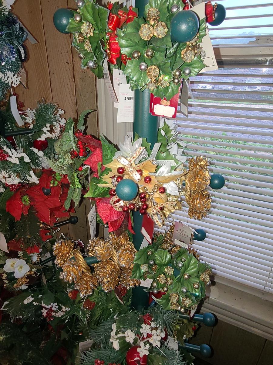 This lot is for two wood tree display stands and all of the decorative candle wreaths included. This would be great for crafters, craft shows, or in a retail store. Guesstimate on height is 5 feet tall. Please see all pictures as they are the best representation of the items and the condition of the items in the lot. If measurements were taken they will be in the description or in the pictures. To find details on individual items, please Google the item for specifics. We like to keep the integrity of new in unopened box as much as possible. Due to storage of this inventory over the years, please see pictures to determine condition of the box if there is one. All items are listed as new, or were used only as display. These come from a smoke free property.
