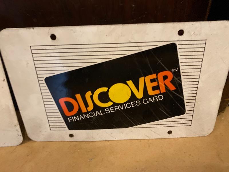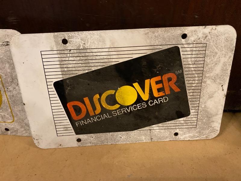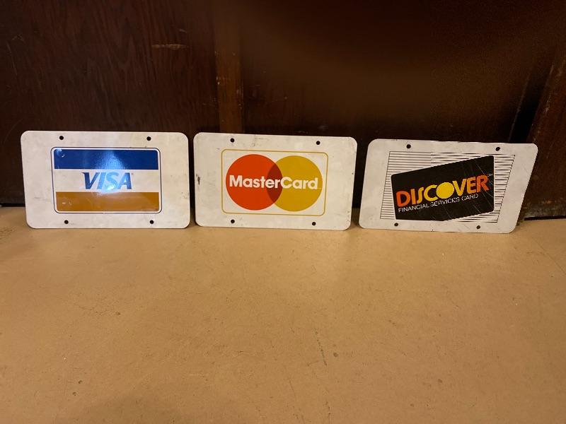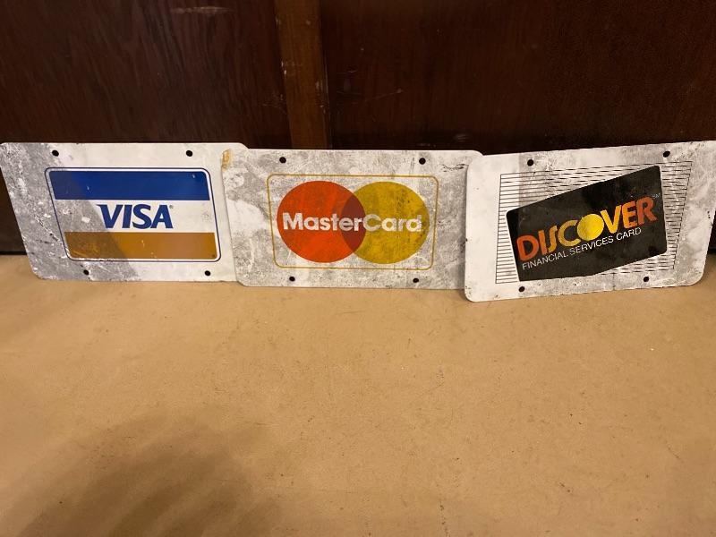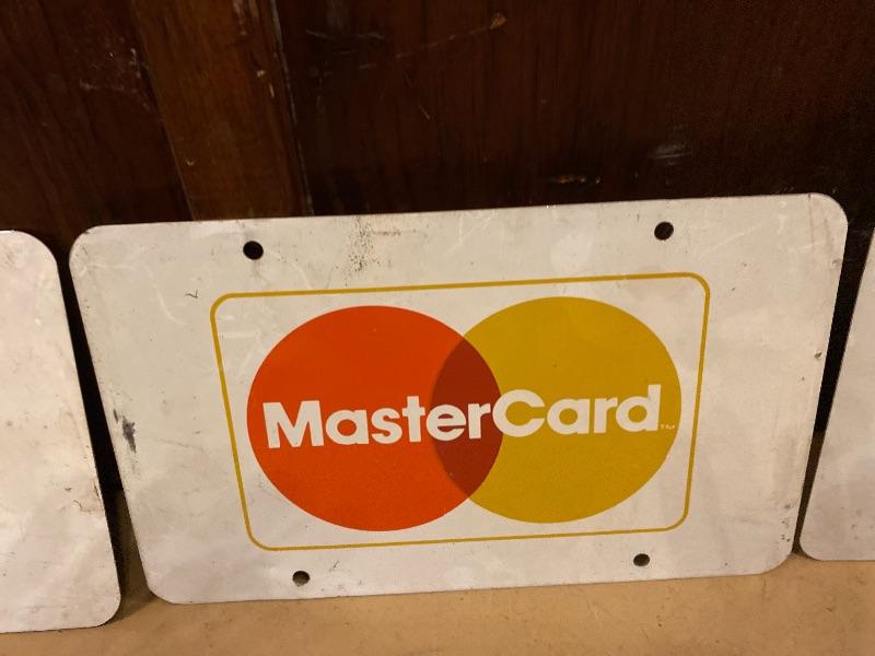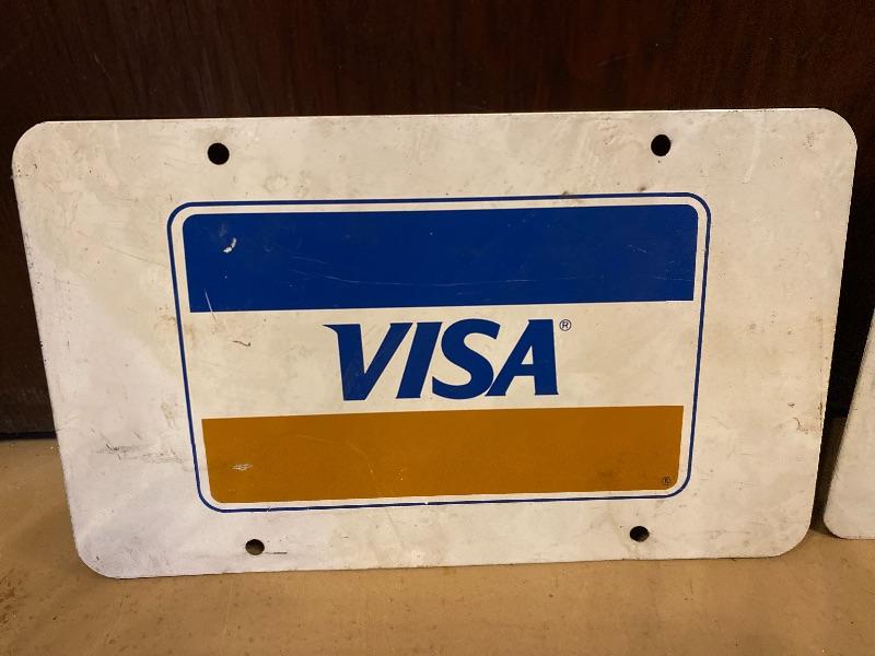 Lot# 64 Vintage 2 sided Metal Credit Card Signs VISA MASTERCARD DISCOVER Advertisement