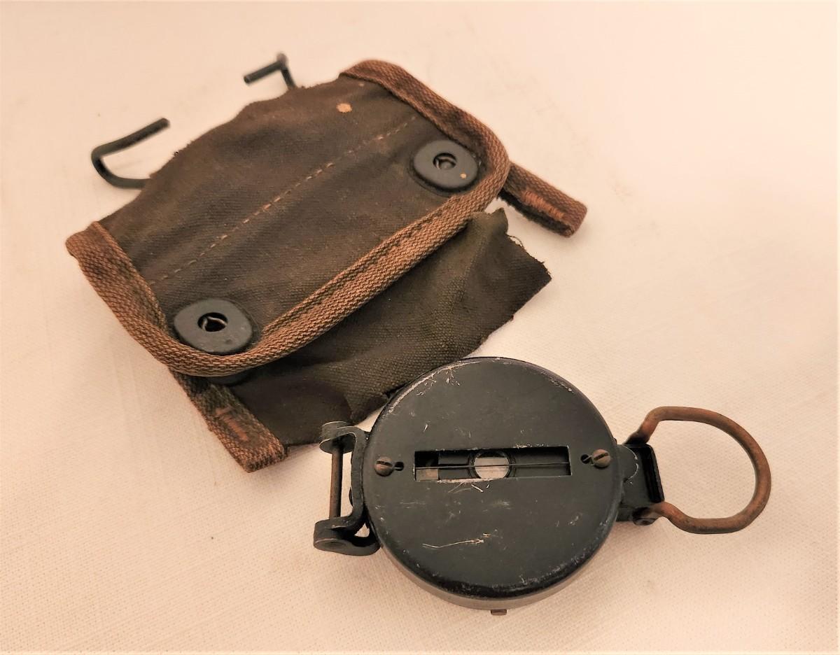 Vintage compass, possibly military - metal case - 4" long. Fabric case is rather "crunchy." Appears to be in working condition.