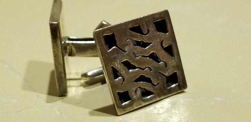 LOT #640: Mid Century Modern 925 Sterling Silver Cufflinks