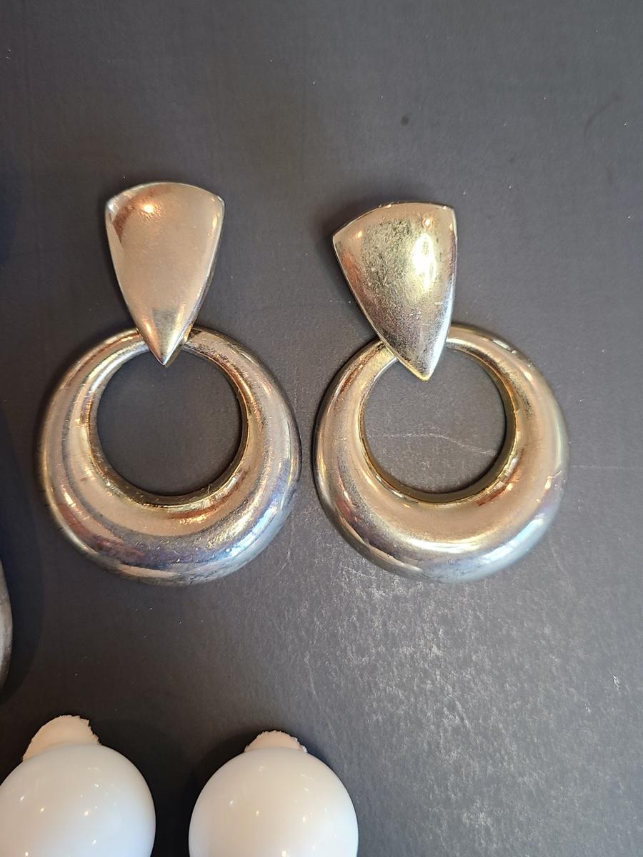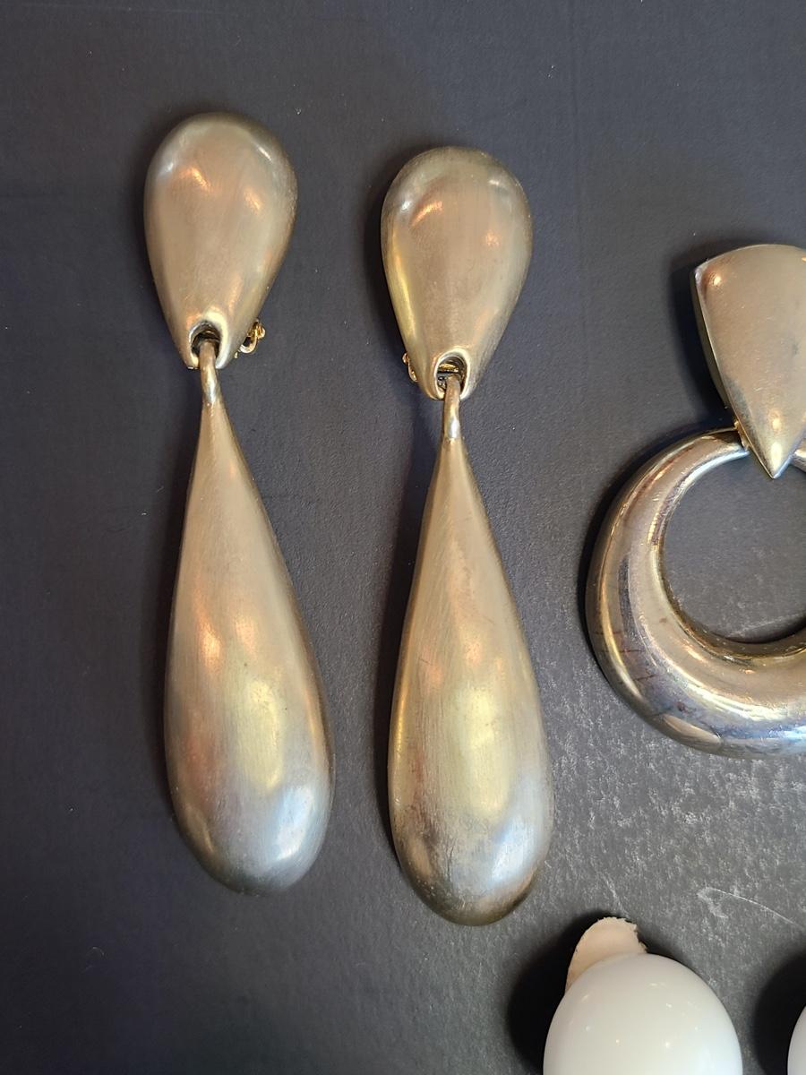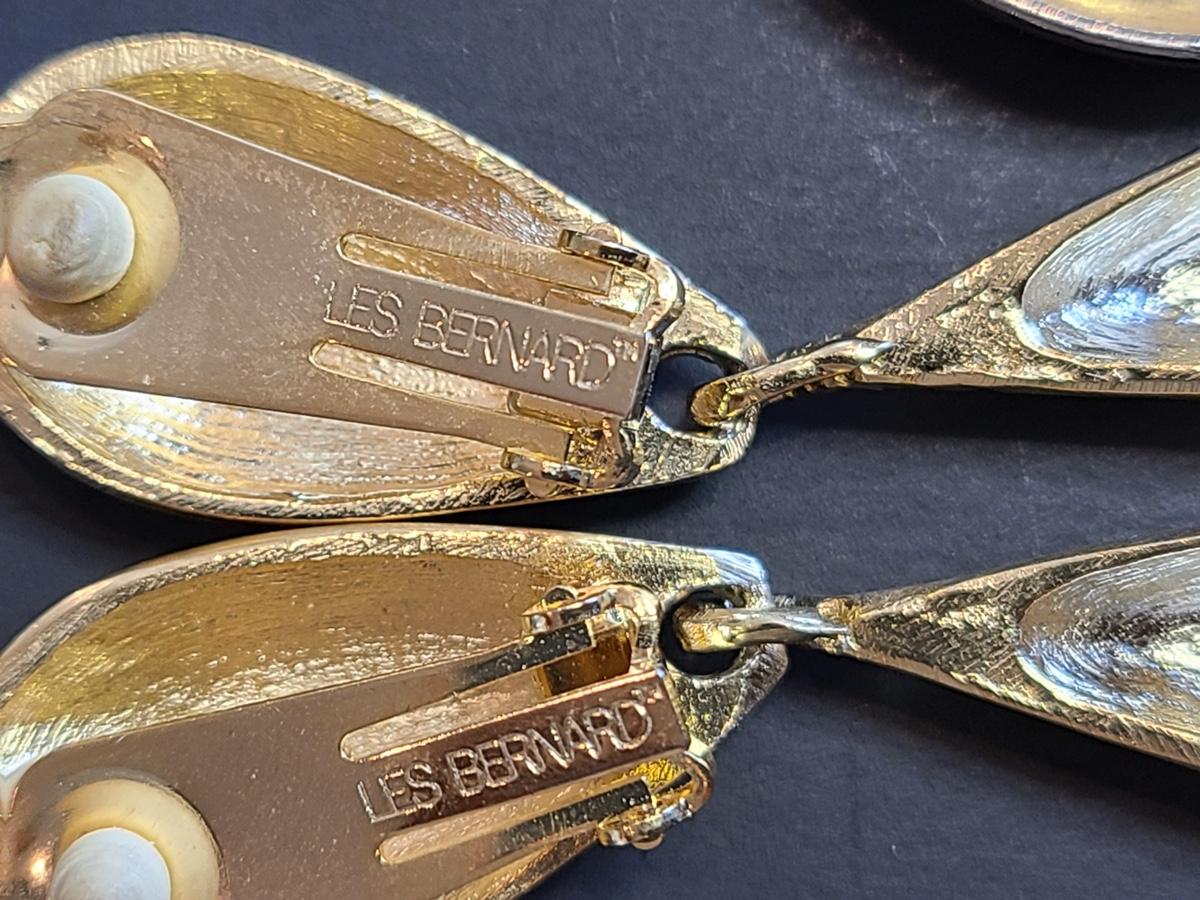 Gorgeous lot of big "chunky" clip-on earrings by designer Les Bernhard. This are gold in tone. Please see all pictures. The pictures show condition, measurements if taken, and what is included in the lot. Due to the large amount that we photograph and the time frame, we are not always able to take measurements. All items unless noted, are pre-owned and have been used. If you purchased furniture, you must bring help. We do not allow one person to carry large furniture out on their own. Bring help, tools and a truck for the safety of our client’s homes, and your personal safety. Company policy. Thank you