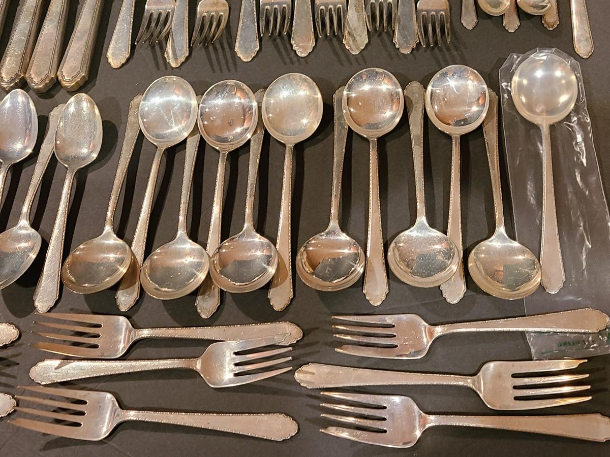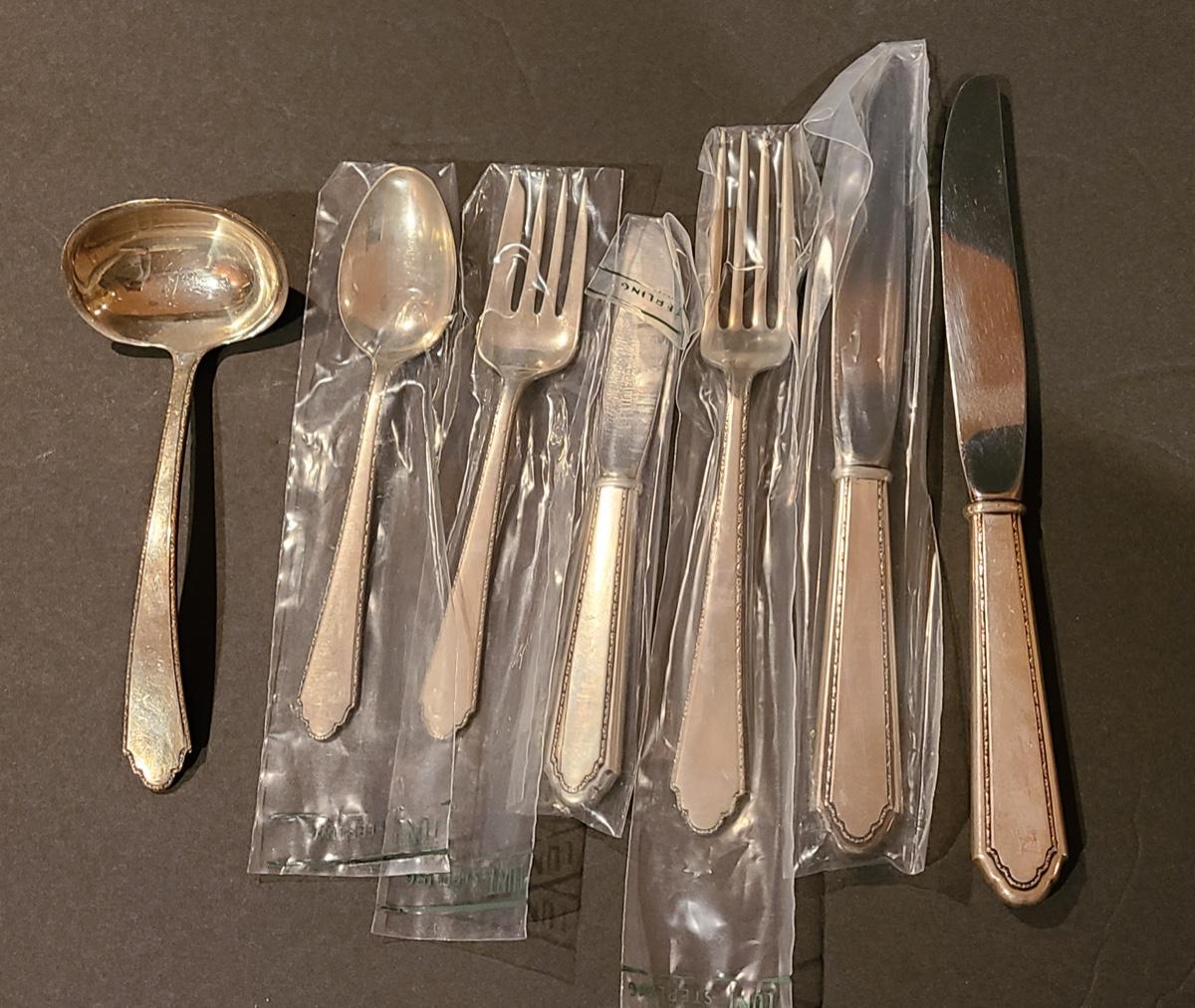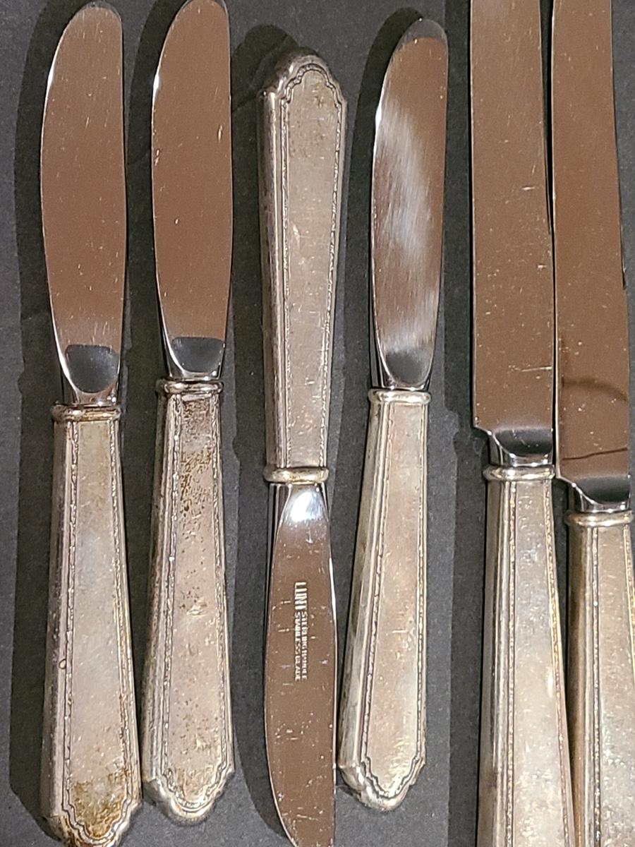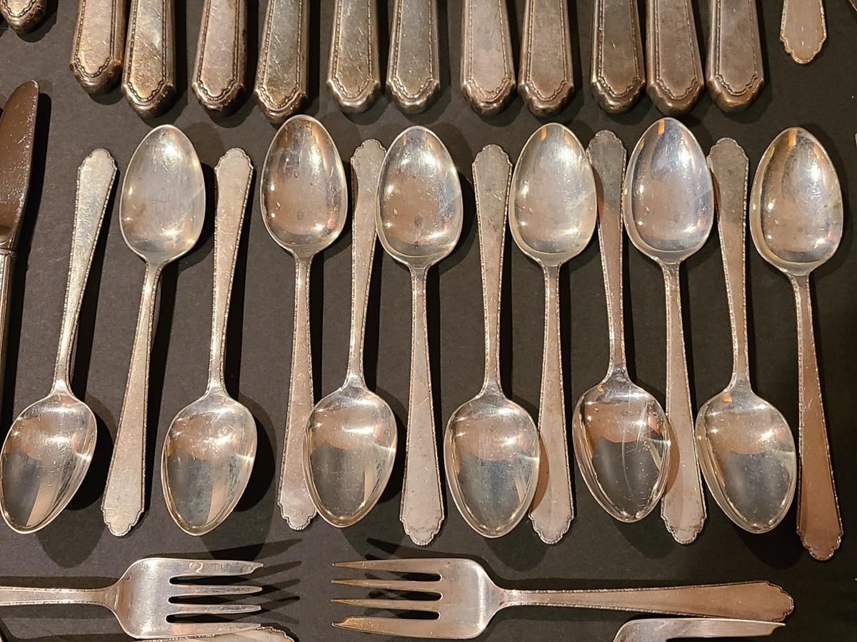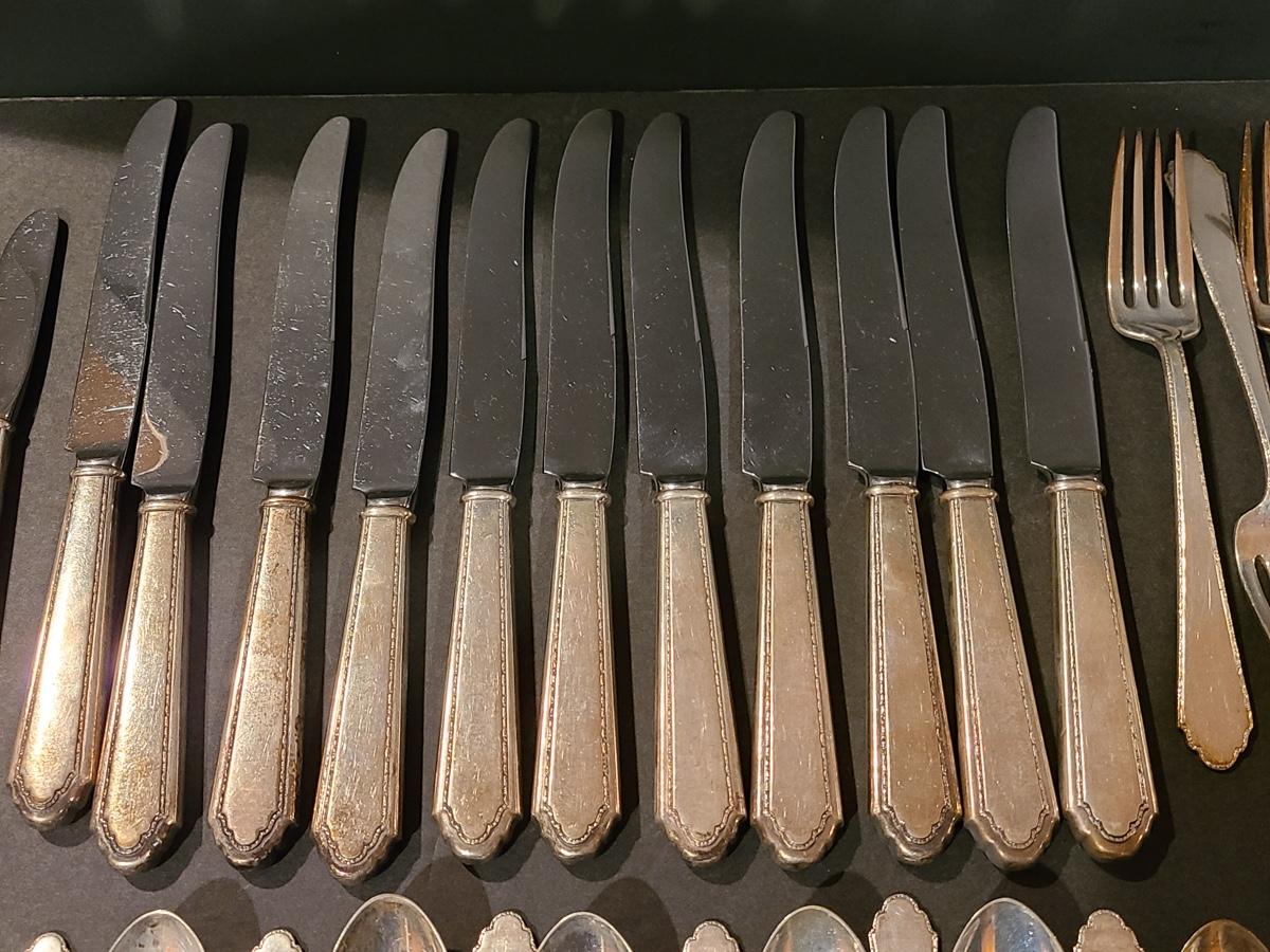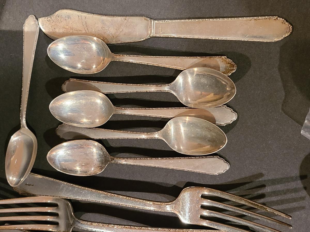 Please let read carefully: This is for what is seen in the pictures. There is enough for a 12 place setting, but one of the knives is a newer version of the vintage/antique version and has the slightest variation to the blade. That is why in the picture you see 11 knives, but in the final you see two extra butter knives, and random extra pieces. This comes with 11 knives, 12 larger forks, 12 smaller forks, 12 teaspoons, and 12 soup spoons, NOT 12 Larger spoons like some sets. These are not monogrammed. This looks to be the 1921 William and Mary pattern.Also included are the extras in the last photo. Please see all pictures. The pictures show condition, measurements if taken, and what is included in the lot. Due to the large amount that we photograph and the time frame, we are not always able to take measurements. All items unless noted, are pre-owned and have been used. If you purchased furniture, you must bring help. We do not allow one person to carry large furniture out on their own. Bring help, tools and a truck for the safety of our client’s homes, and your personal safety. Company policy. Thank you
