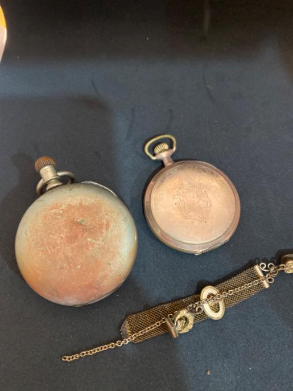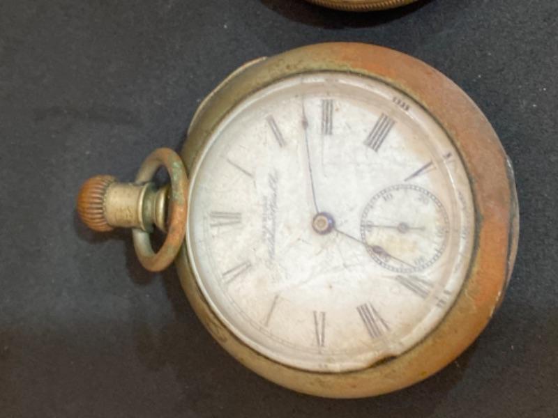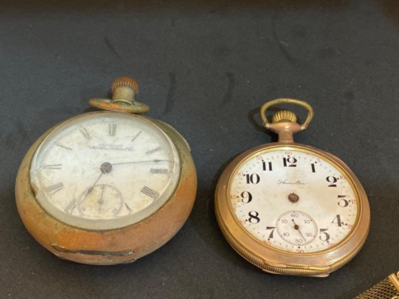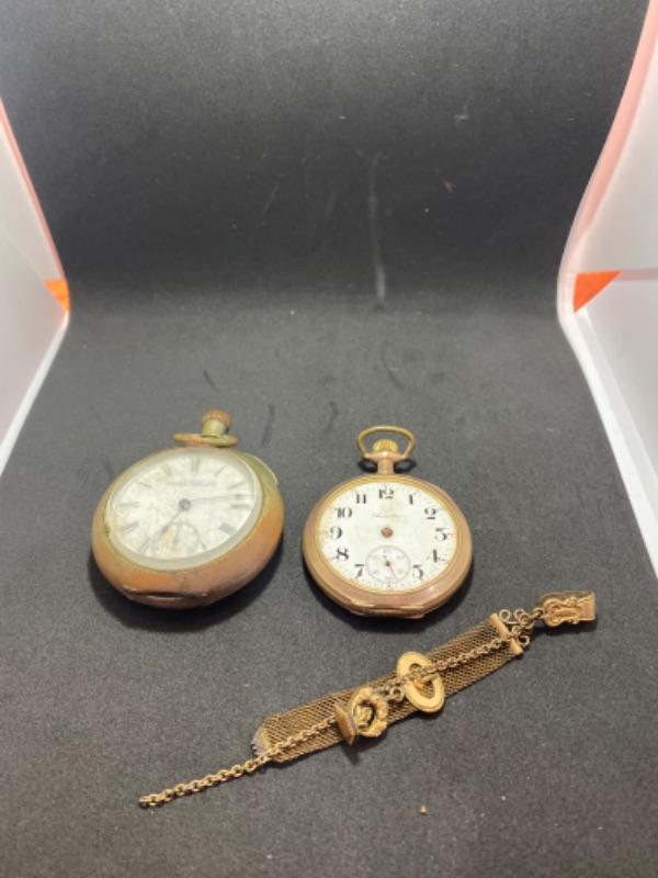 Lot of two pocket watches neither one is in working condition the fob is gold plated
