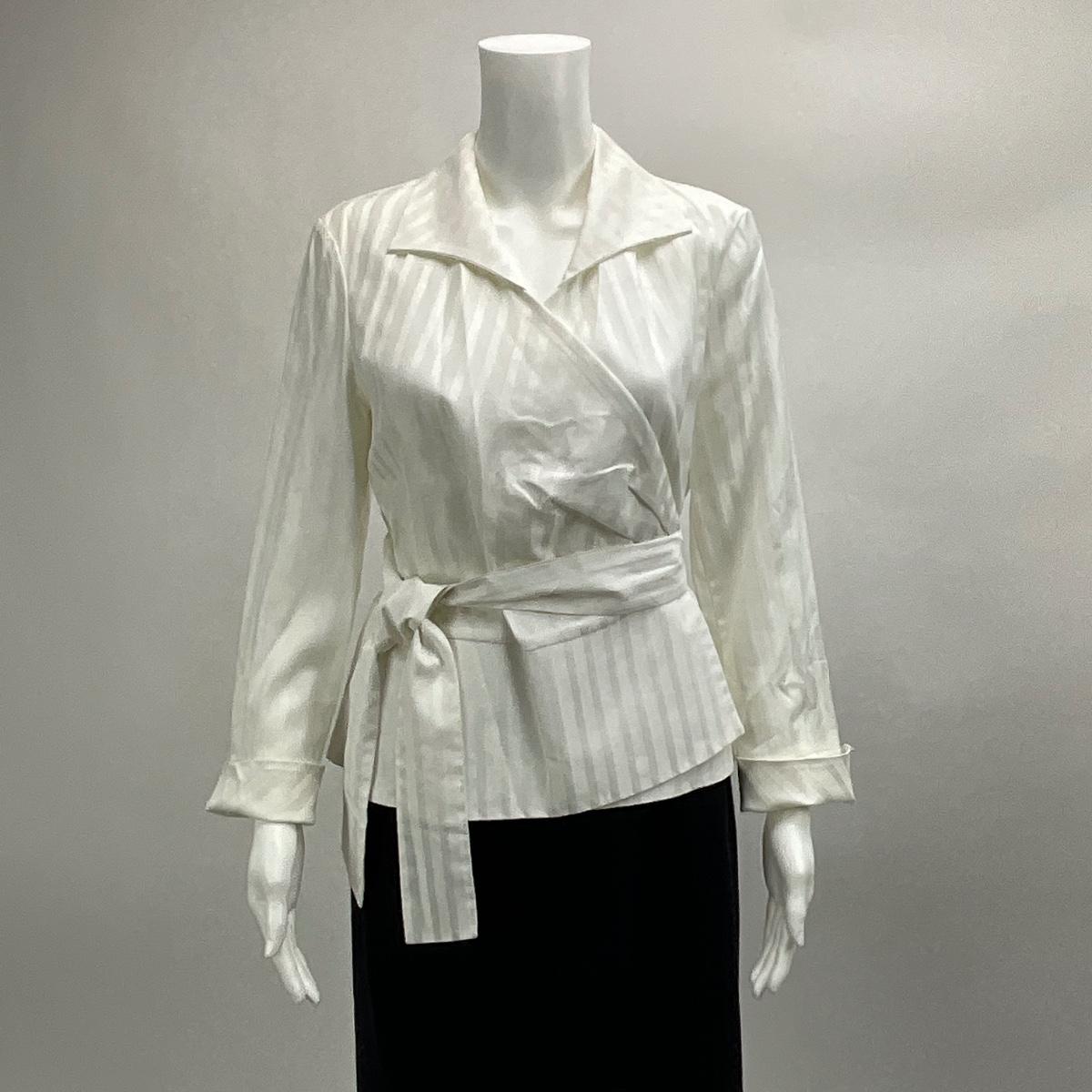 Alain Figaret Romania White Wrap Tie Blouse Size 40, measures