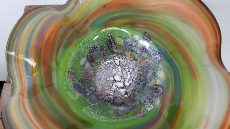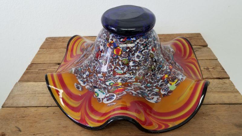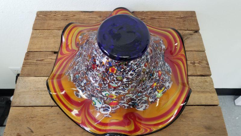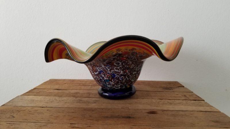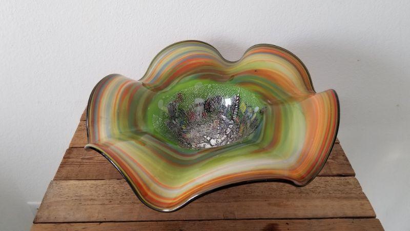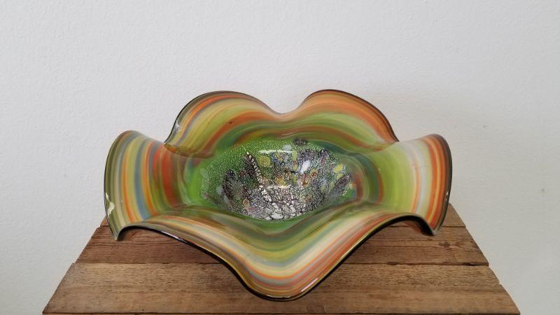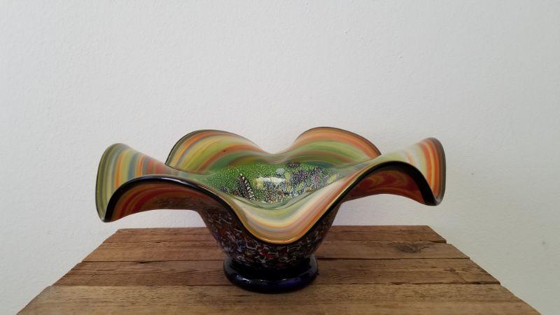 Heavy Gorgeous Hand Blown Ruffled Edge Glass Bowl.