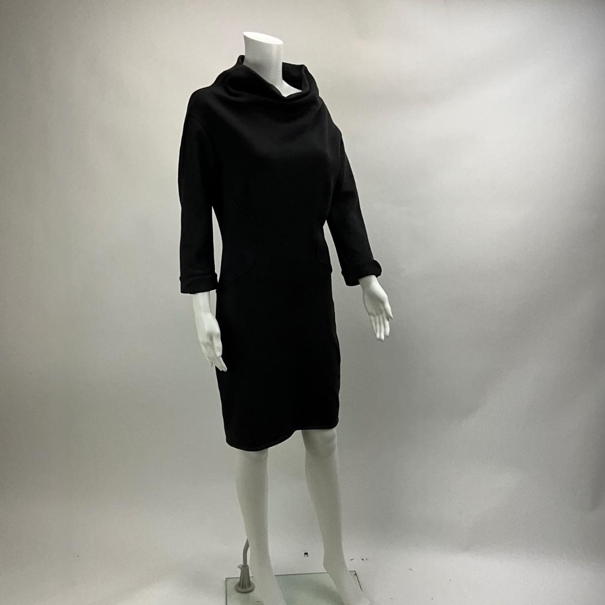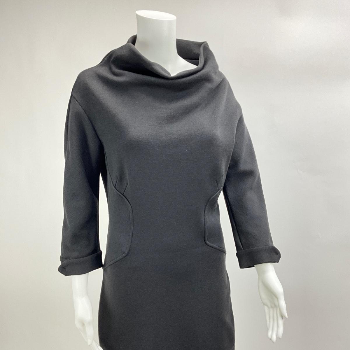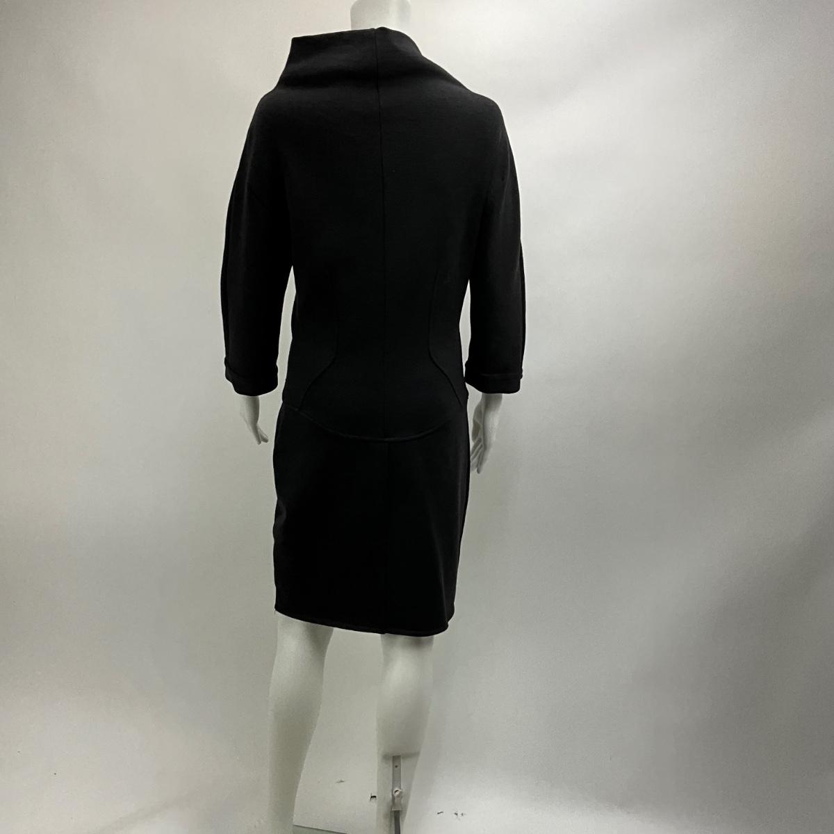 Costume National Black Label Wool Blend Long Black Dress with cow neck and 3/4 length sleeve, Size Medium, measures