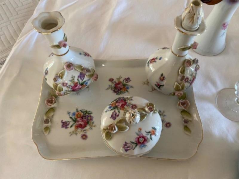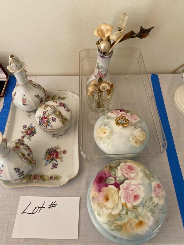 Lot #645 Porcelain Vanity Set with Hat Pins