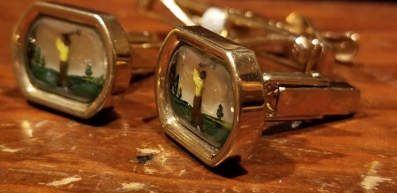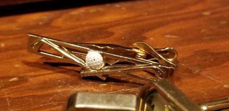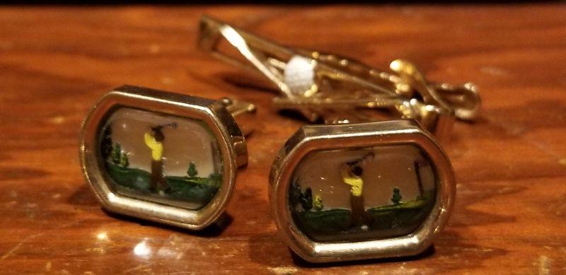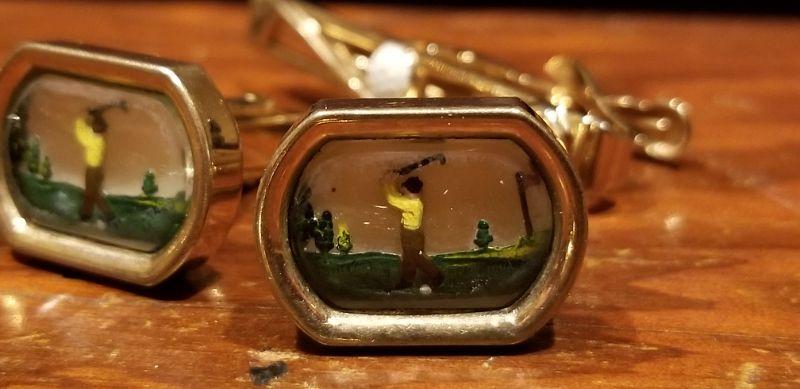 LOT #645: Men's GOLF THEMED Cufflink and Tie Bar Set