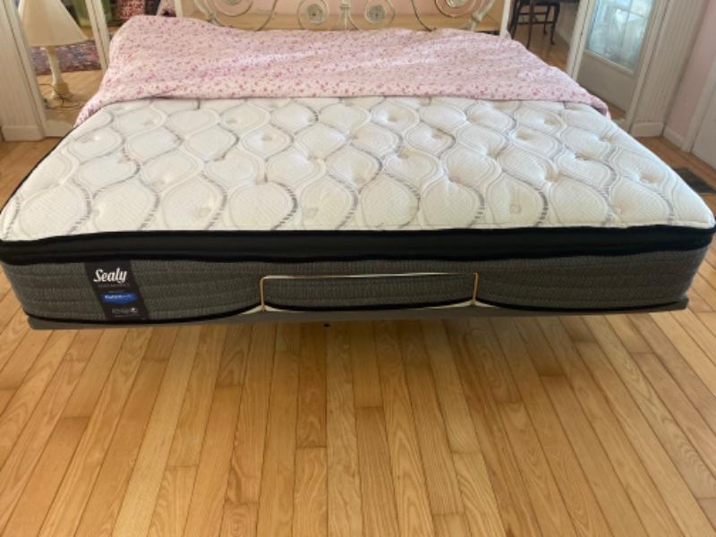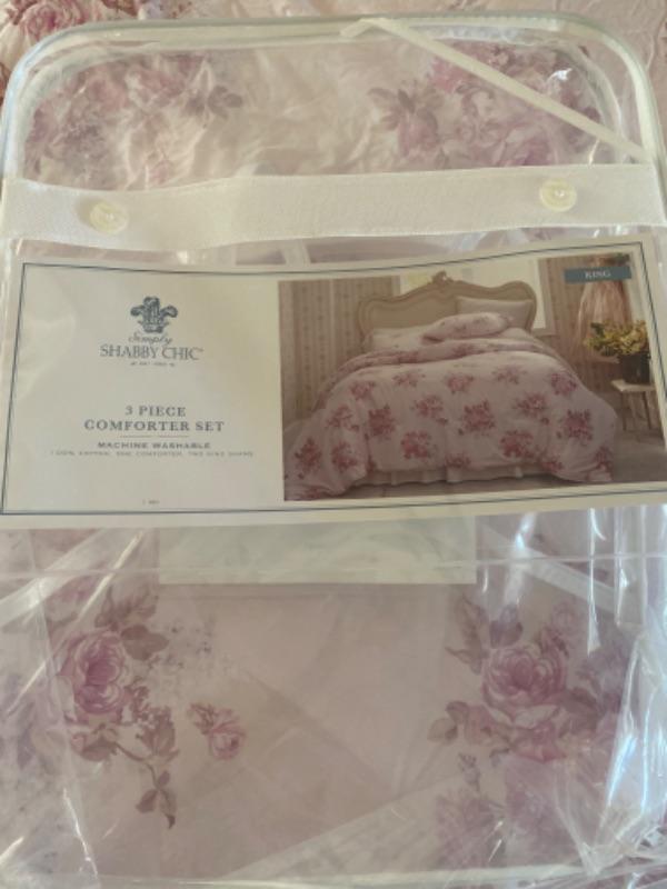 Enso Automatic Bed with Shabby chic bedding (king size with two shams) comes with Round White painted Mirror